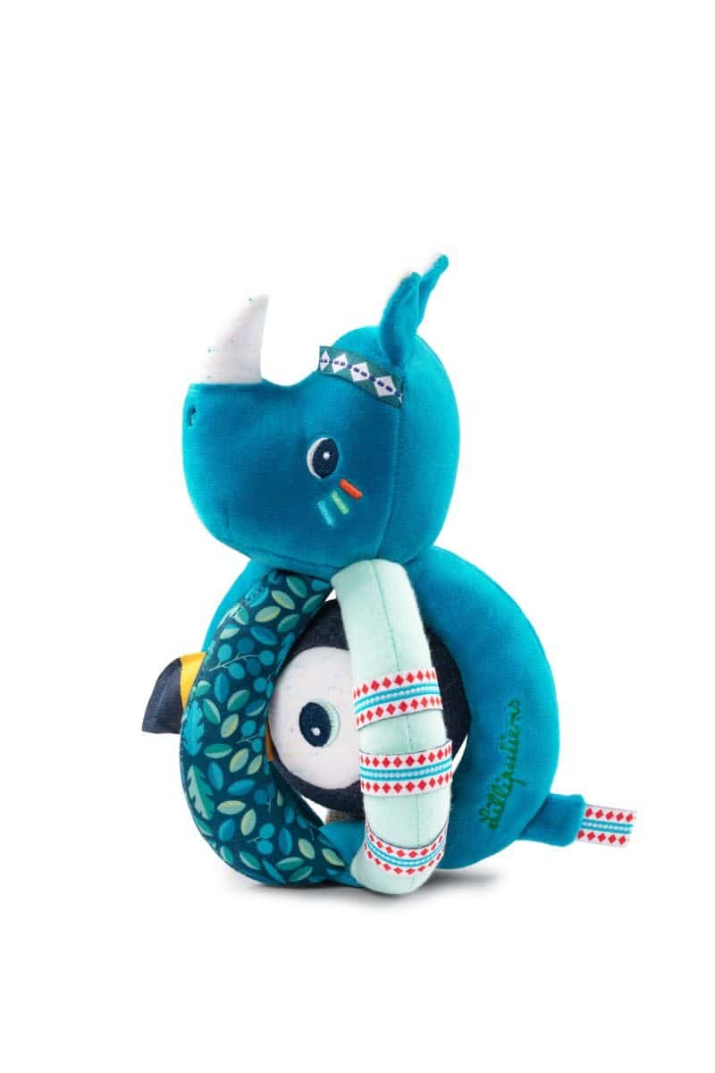 Deze originele rammelaar Marius de neushoorn zal uw kleintje vermaken. Eenvoudig door kleine handen vast te pakken, de rammelaar stimuleert tevens de zintuigen van de kleintjes door de verschillende texturen van de handgrepen van de rammelaar. Er zit een toekan binnenin Marius de neushoorn verstopt. Hij kan makkelijk worden verwijderd of geplaatst, voor gegarandeerd plezier! Deze grijprammelaar is geschikt voor baby’s vanaf 6 maanden.
