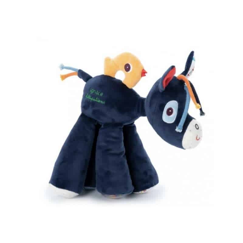 Ignace de ezel strekt zijn poten tot groot plezier van de kleintjes. Knisperen, rammelen, rinkelend belletje, …of zelf balken… Ignace is een waar festijn voor kleine oortjes