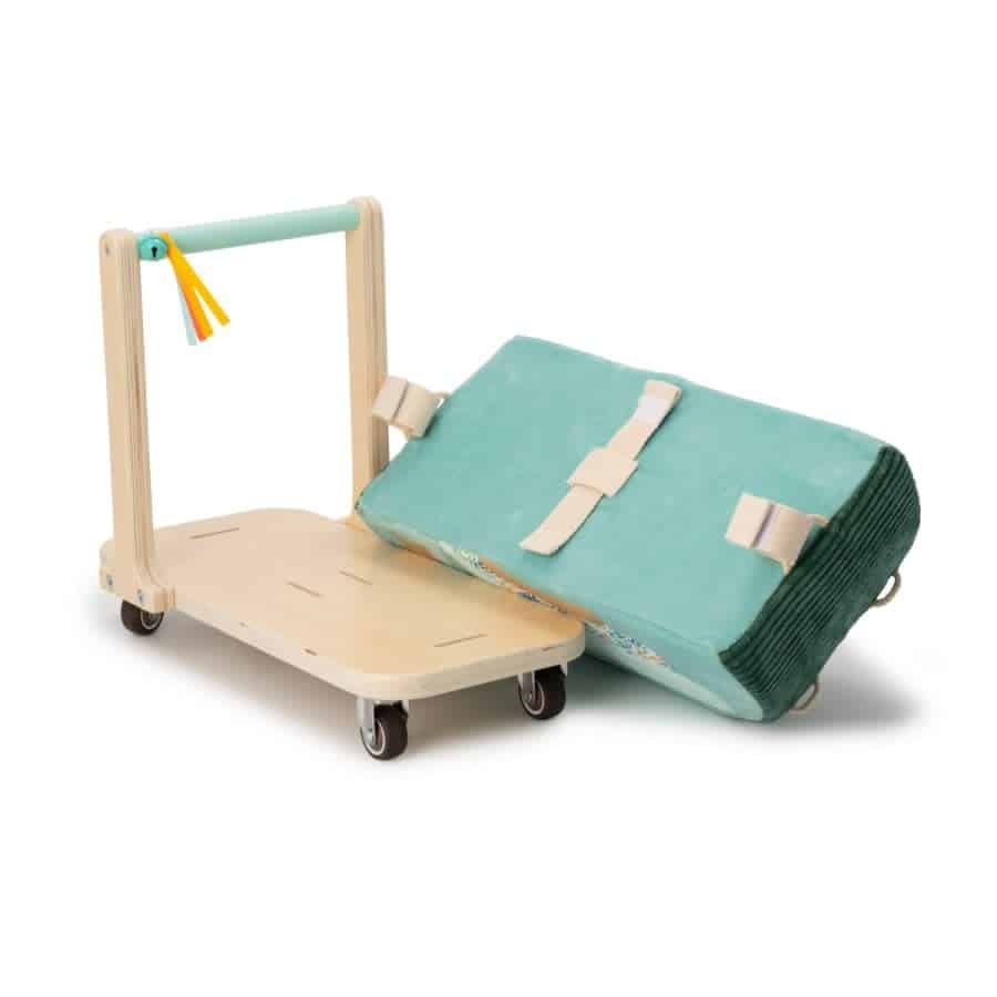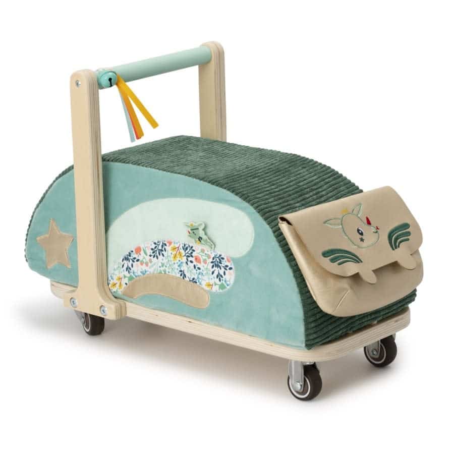 Zittend op deze zachte loopwagen, kan je kleintje veilig door de kamer racen. In het verwijderbare tasje berg je al je spulletjes op. Wordt je kindje te groot voor de loopwagen, kan de zitting verwijderd worden en dienst doen als zitje.