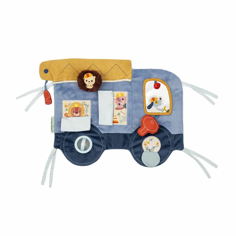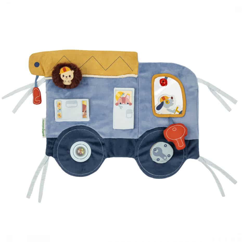 Er is veel activiteit in de vrachtwagen van Jules. De bel rinkelt… op naar de volgende werf! Start de vrachtwagen met de grote sleutel, en ontdek een wereld vol stimulerende activiteiten. Dit paneel kan eenvoudig aan de babybox worden bevestigd