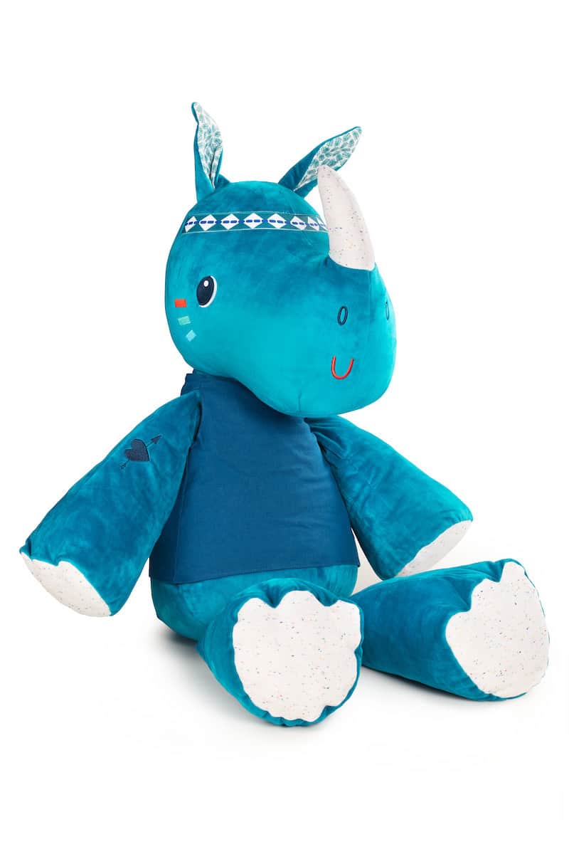Wie kan weerstaan aan Marius, de extra grote knuffel-neushoorn ? Met zijn prachtige kleuren fleurt hij de kinderkamer op