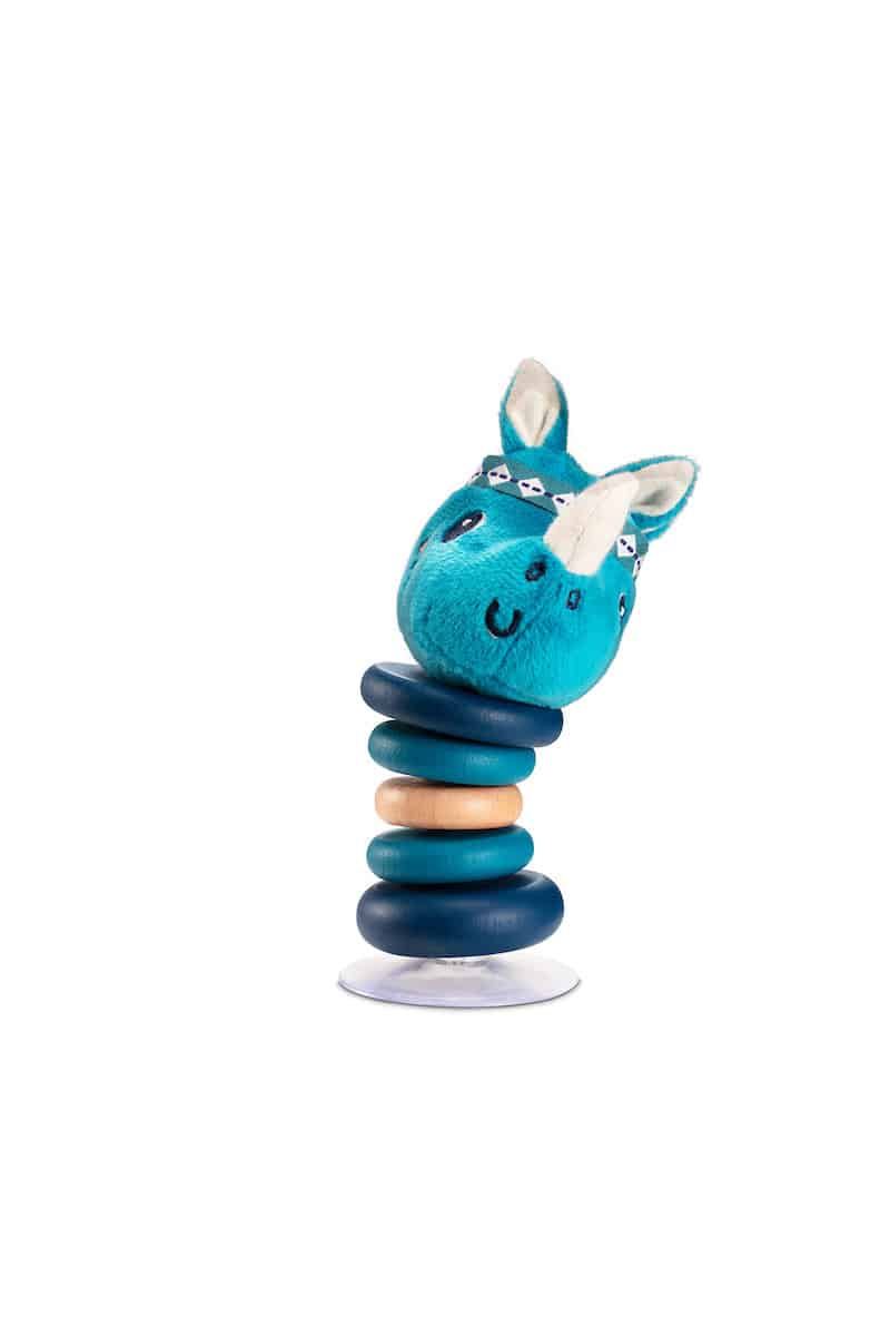 Deze rammelaar swingt vrolijk heen en weer bij het minste duwtje. Dankzij het zuignapje blijft hij stevig rechtstaan en kan je hem overal vasthechten.