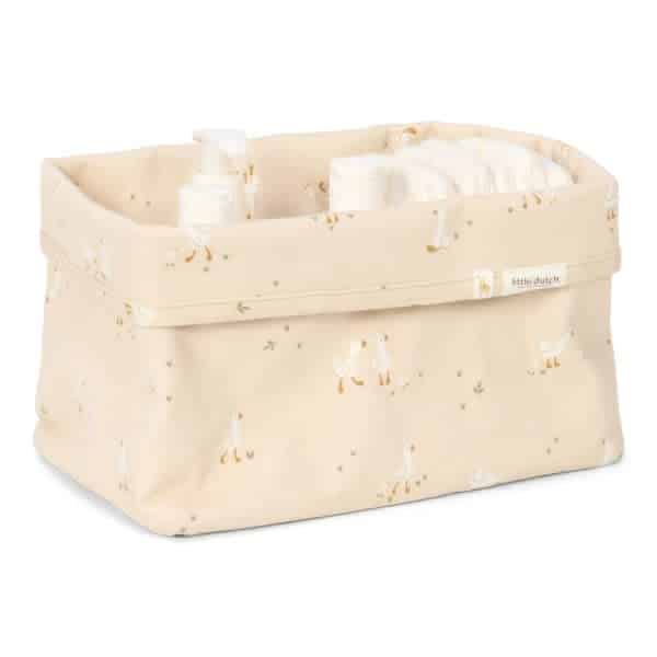 Geen rondslingerende luiers, tubes en flesjes meer: dit Little Dutch commodemandje houdt de verschoontafel netjes en georganiseerd! De Little Dutch commodity mand is mooi afgewerkt en biedt een opbergplek voor alle producten die je dagelijks nodig hebt voor de verzorging van je baby. Een mooi accessoire voor de babykamer. Deze uit de Little Goose collectie in mooie rustige kleur is verrijkt met lieve ganzenprint. Ook verkrijgbaar in andere maten en vormen.