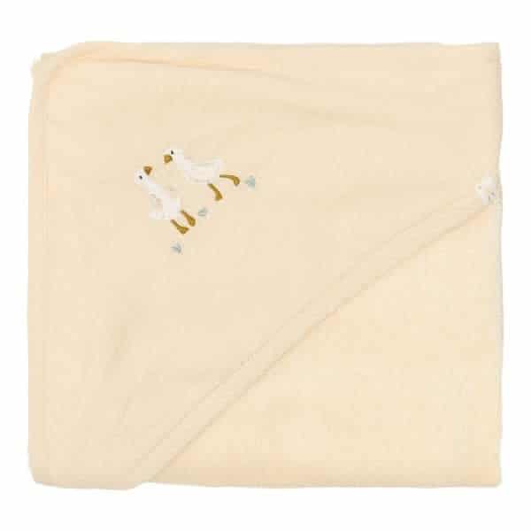 Het perfecte cadeau voor iemand die een baby verwacht of heeft gekregen. Of verwen je kleintje (en jezelf) met deze schattige cadeaubox! Deze set bevat een heerlijk zachte washand in de vorm van een gans – ja, je leest het goed, een gans. En een badcape met lief ganzenborduursel, perfect voor na het badderen. De luxe cadeauverpakking is niet alleen superleuk, maar ook handig om te bewaren. Wie weet wordt het de perfecte plek voor alle speciale herinneringen van de kleine.
