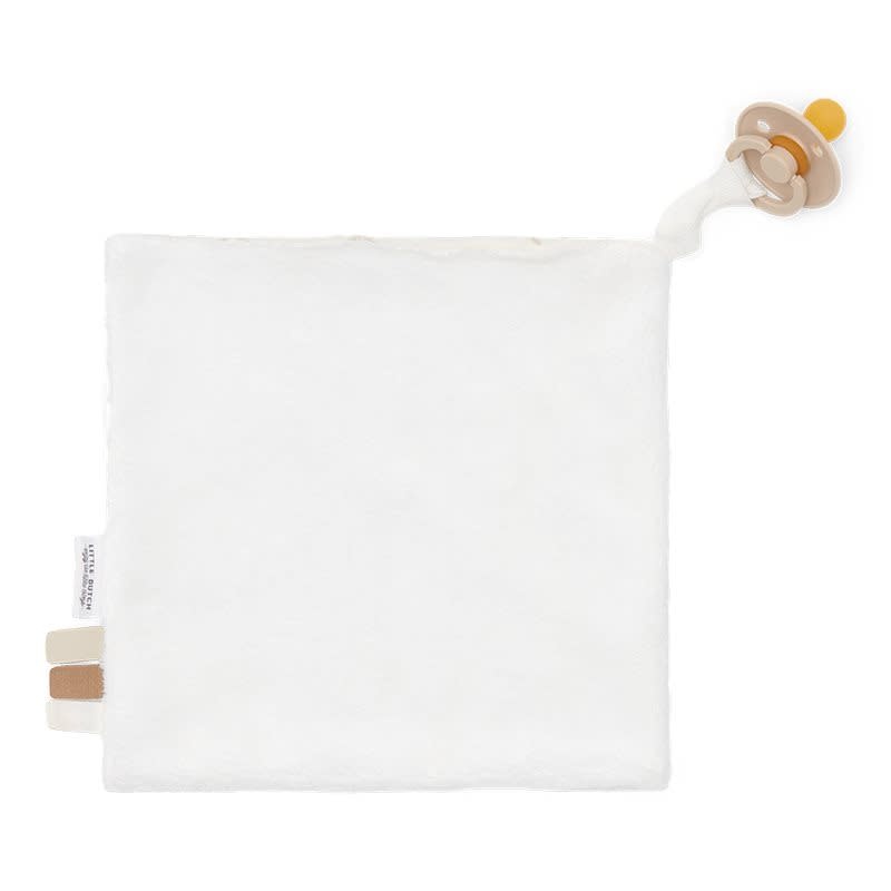 Deze knuffeldoek hydrofiel Baby Bunny van Little Dutch is gemaakt van biologisch katoen en is Oeko-Tex gecertificeerd. De voorkant van het doekje is gemaakt van een voorgewassen hydrofiele stof en de achterkant van een zachte fleece stof. Hierdoor zijn beide kanten heerlijk zacht. Perfect als speen-, speel- of troostdoek voor je baby of peuter. Aan het lusje van de knuffeldoek kun je een speen- of bijtring bevestigen. De knuffeldoek is 20 x 20 cm. Samenstelling: Voorkant: 100% biologisch katoen / Achterkant: 100% polyester Afmeting: 20x20cm