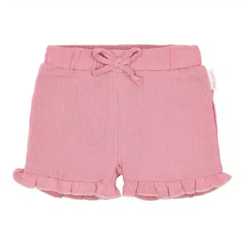 Deze lieve korte broek is gemaakt van zachte mousseline stof en heeft schattige ruches aan de onderkant. De elastische tailleband met een klein strikje zorgt voor extra comfort en gemak bij het aan- en uitdoen. Perfect voor zomerse dagen en eindeloos speelplezier. Gemaakt van biologisch katoen, heerlijk zacht voor de gevoelige huid van je kindje.