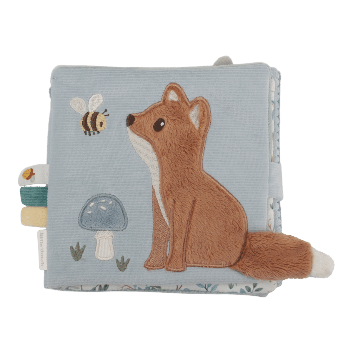 Je hoeft je niet te vervelen met dit kleurrijke activiteitenboekje van Forest Friends. Het lieve vosje nodigt je uit om een kijkje te nemen in het betoverende bos. Er valt veel te ontdekken met de verschillende texturen en activiteiten, zoals een spiegeltje, een rammelaar en verstopte speeltjes. Ook heeft het zachte boekje verschillende labels om aan te voelen. Dit boekje prikkelt niet alleen de zintuigen, maar is ook goed voor de ontwikkeling van de hand-oogcoördinatie.