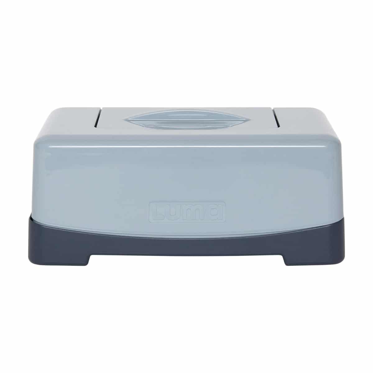 De LUMA billendoekjesbox mag niet ontbreken op jouw commode. Deze hippe box is heel handig in gebruik, maar ziet er ook nog eens erg mooi uit. Met één vinger is de box eenvoudig te openen en te sluiten en je billendoekjes drogen nooit meer uit. Vanwege het grote formaat is de box geschikt voor alle soorten billendoekjes. Eenvoudig haal je de bovenkant eraf en plaats je een nieuw pak met vochtige doekjes. De box is verkrijgbaar in verschillende moderne kleurcombinaties en onderdeel van een complete serie bad- en verzorgingsartikelen.
