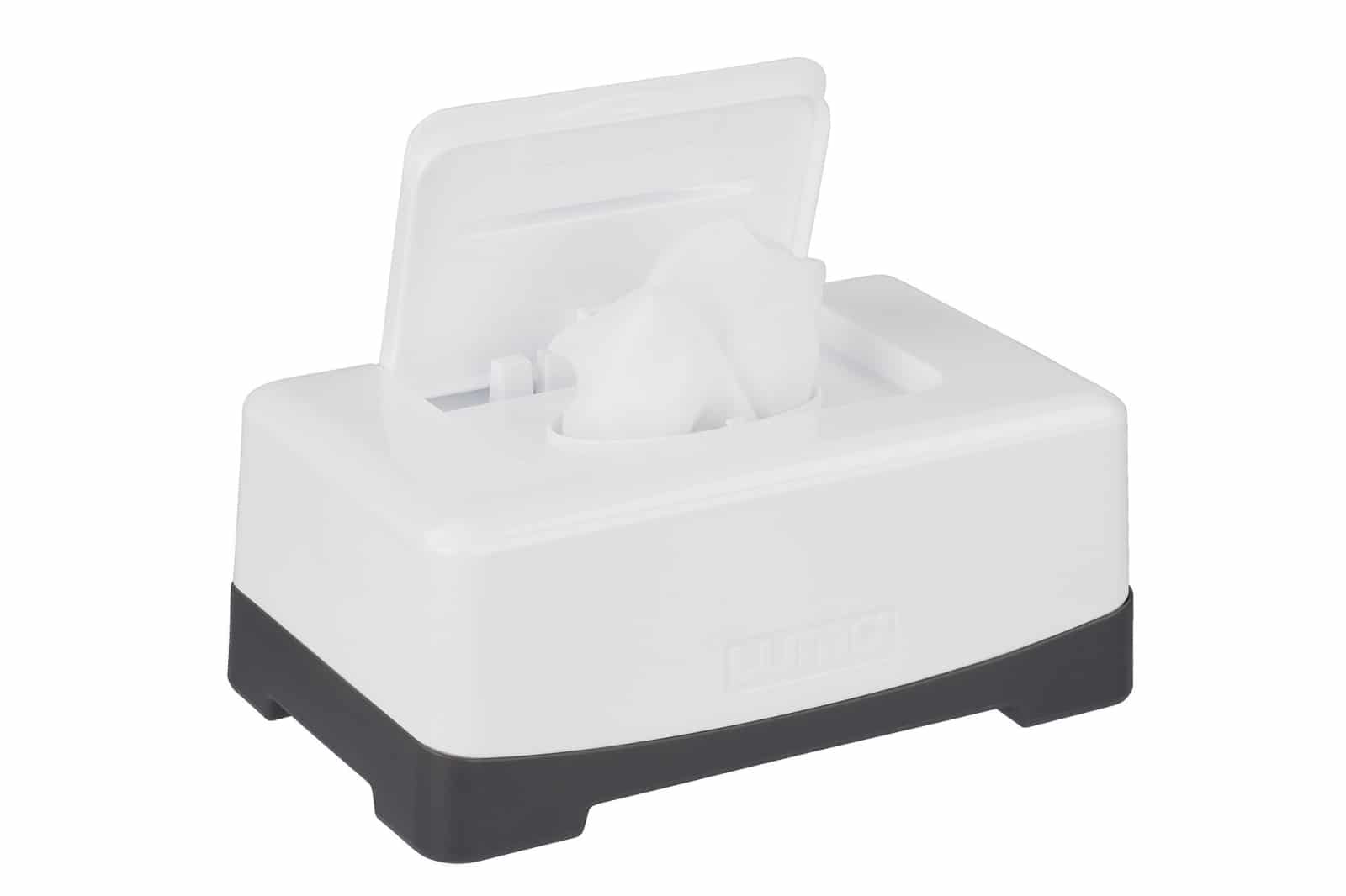 De LUMA billendoekjesbox mag niet ontbreken op jouw commode. Deze hippe box is heel handig in gebruik, maar ziet er ook nog eens erg mooi uit. Met één vinger is de box eenvoudig te openen en te sluiten en je billendoekjes drogen nooit meer uit. Vanwege het grote formaat is de box geschikt voor alle soorten billendoekjes. Eenvoudig haal je de bovenkant eraf en plaats je een nieuw pak met vochtige doekjes. De box is verkrijgbaar in verschillende moderne kleurcombinaties en onderdeel van een complete serie bad- en verzorgingsartikelen.