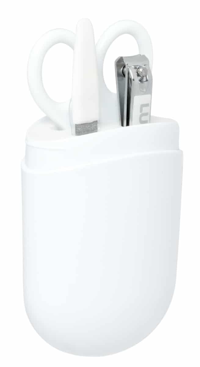 Met het mooie baby manicuresetje van het Nederlandse merk LUMA kun je eenvoudig de nageltjes van je kindje vijlen en knippen. De afgeronde punten en de ronde vorm van het schaartje beschermen je baby tegen nare verwondingen. De manicureset is verkrijgbaar in verschillende moderne kleurcombinaties en onderdeel van een complete serie bad- en verzorgingsartikelen.