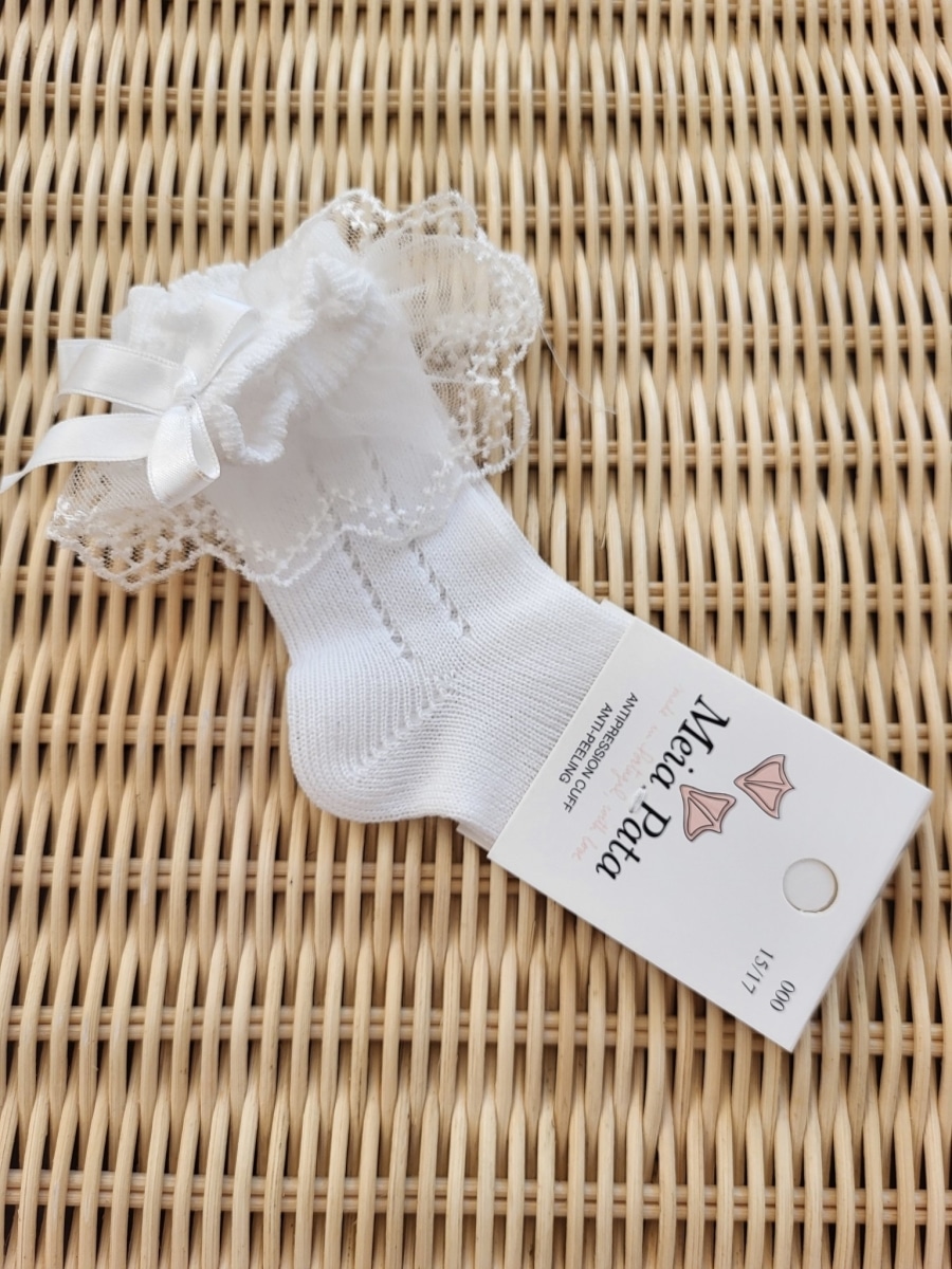 Meia Pata – Kniekousen Wit Met Satijnen Strik En Tule