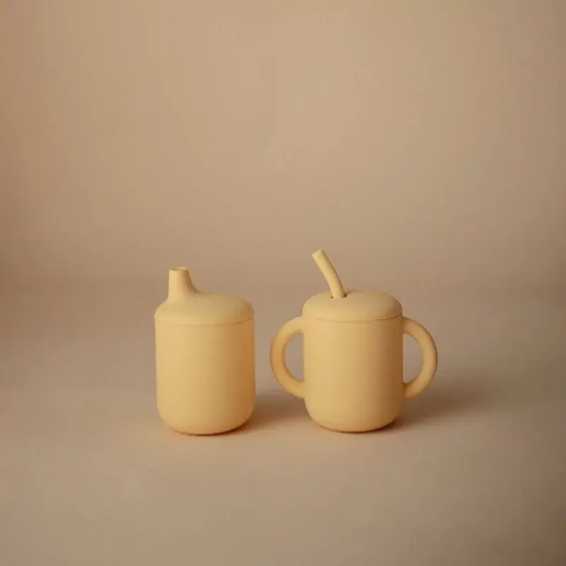 Maak de overgang van zuigfles naar beker veel gemakkelijker met een oefenbeker + rietje van Mushie.