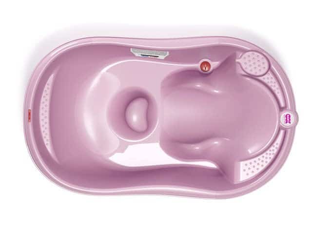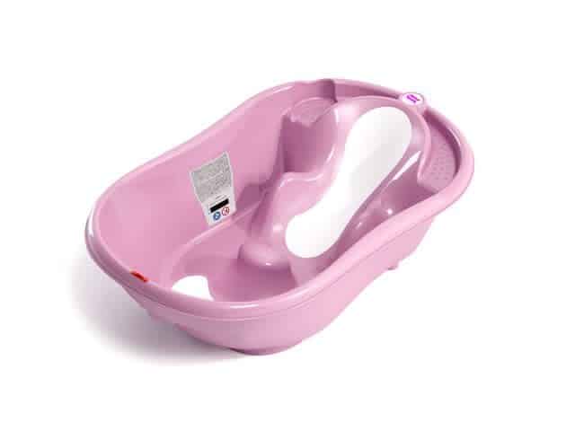 Babybadje met een ligpositie voor kleine baby’tjes en een zitpositie voor peuters. Met ingebouwde badthermometer om de watertemperatuur te controleren en een indicatie van het maximum waterniveau. Het badje kan apart gebruikt worden, met (apart te verkrijgen) regelbare badsteunen voor plaatsing op een groot bad, of in combinatie met de badstaander van OK Baby.