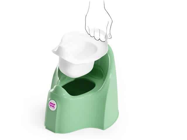 Modern wc-potje van OKBaby met comfortable vorm en hoge rugsteun voor maximaal comfort. Makkelijk te reinigen dankzij het afneembaar reservoir.