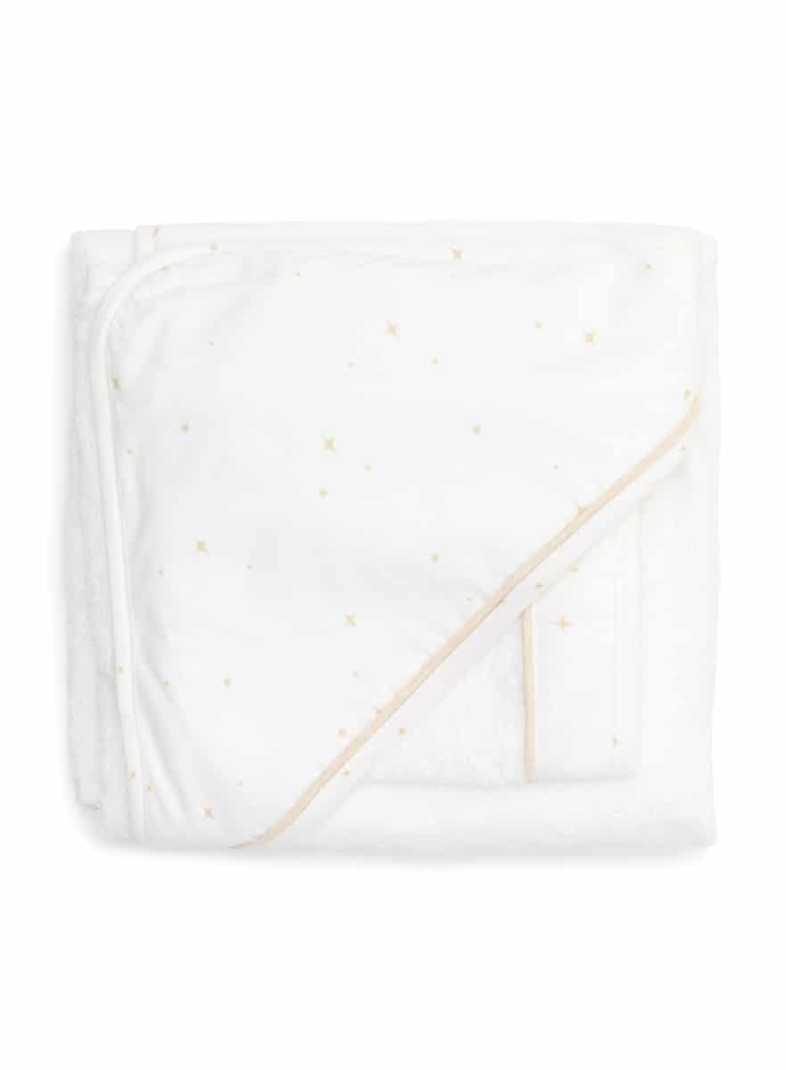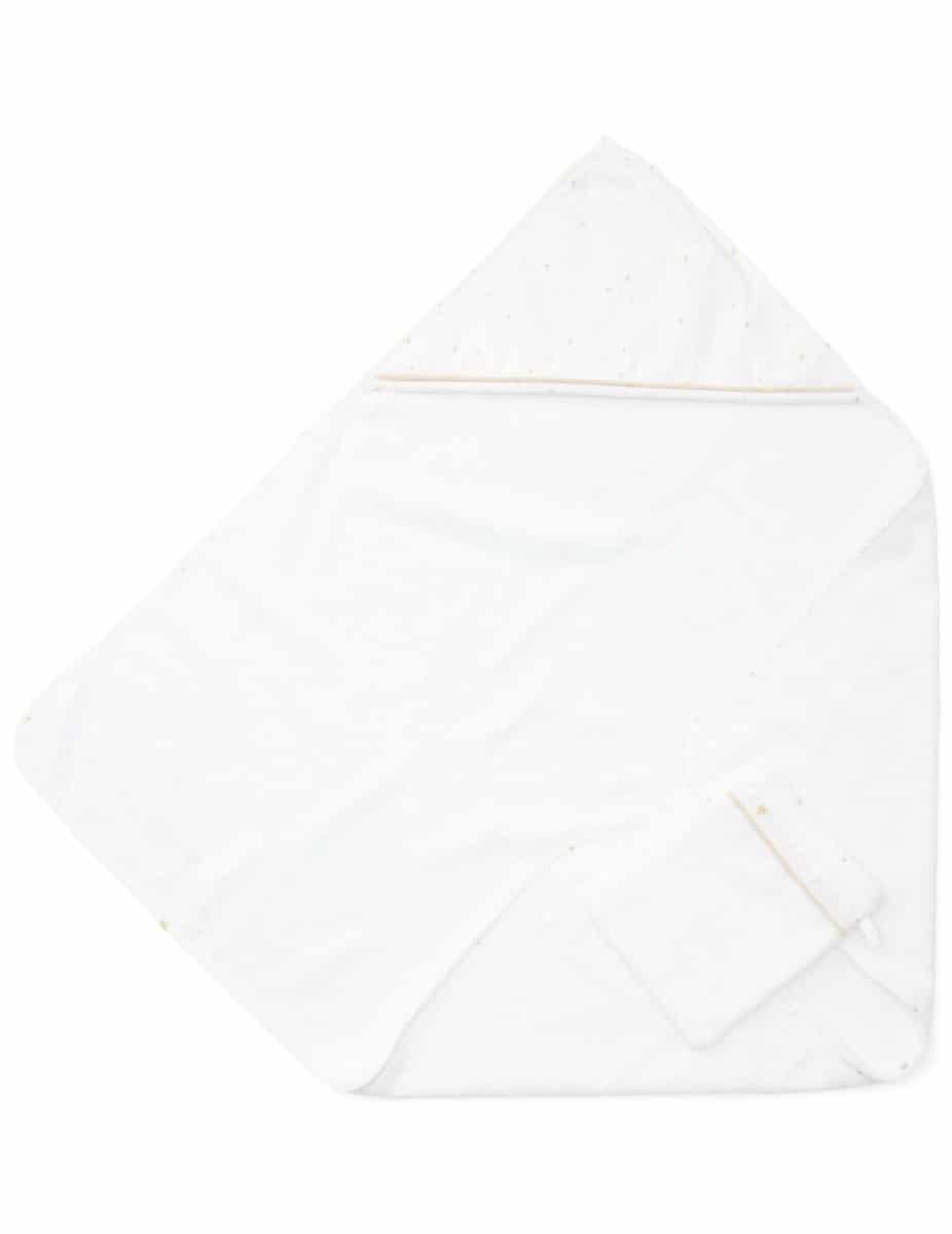 Deze stijlvolle badcape van de Étoile Sand collectie is gemaakt van een mooie dikke kwaliteit badstof waardoor hij extra zacht is voor uw baby en het water goed absorbeert. Ook het washandje is heerlijk zacht en uitstekend geschikt om je baby mee te wassen.
