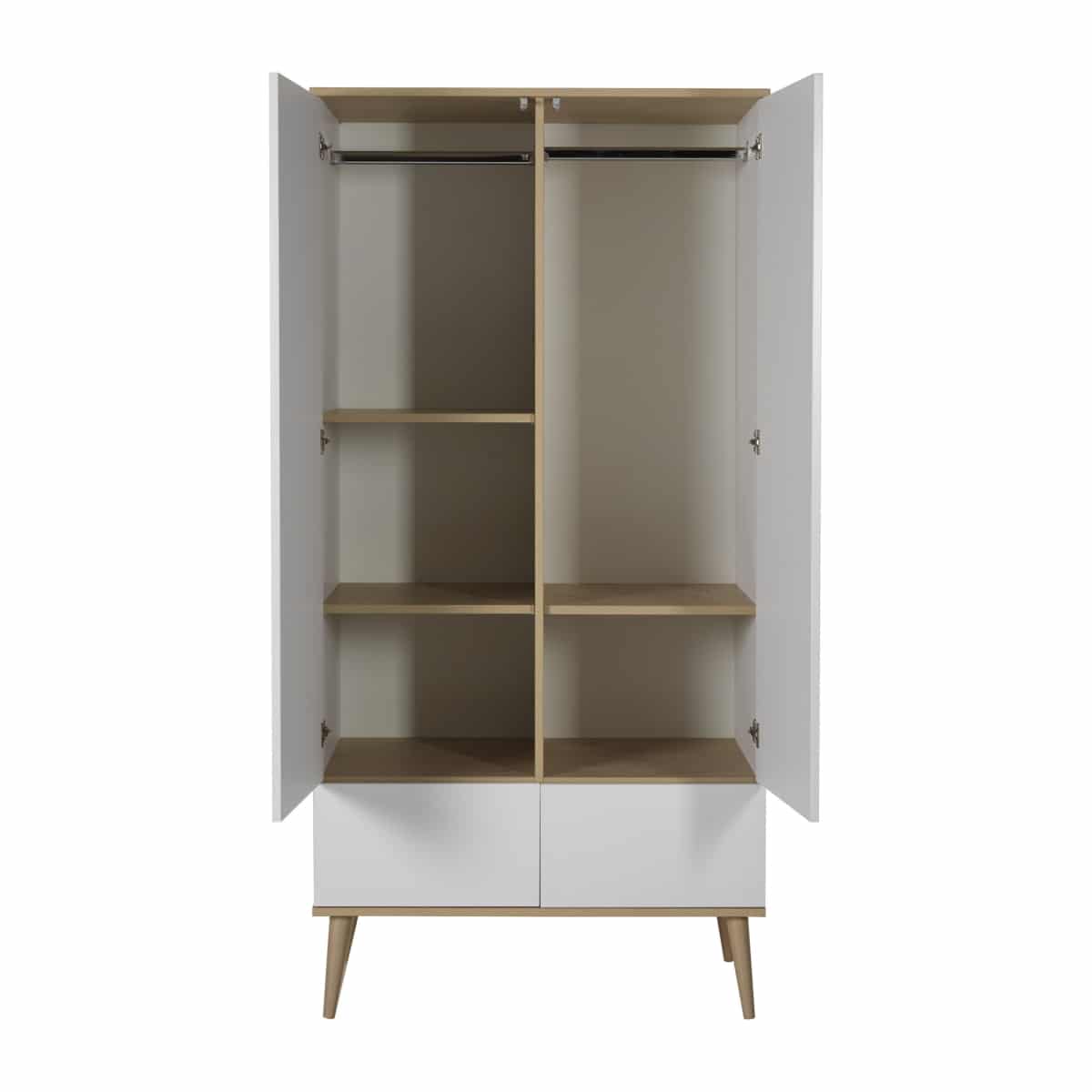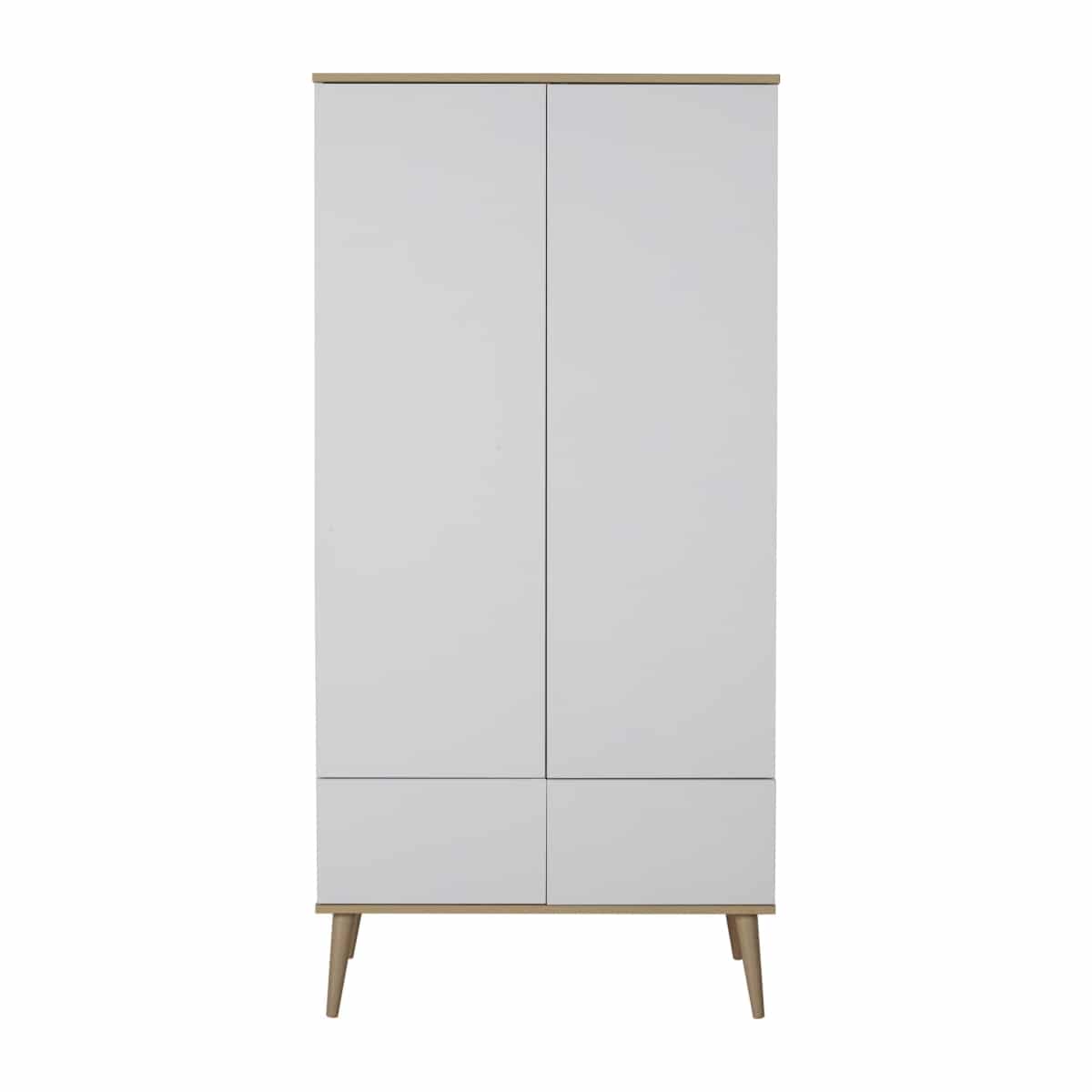 De Flow Kast biedt een elegante en praktische oplossing voor het organiseren van je kinderkamer. Deze ruime designkast combineert functionaliteit met een minimalistisch ontwerp, waardoor het een stijlvolle toevoeging is aan elke ruimte.Met afmetingen van 96 x 196 x 58 cm biedt de Flow Kast volop opbergruimte. De kast beschikt over drie verstelbare legplanken en een kleerroede, zodat je kleding en andere items eenvoudig kunt organiseren. Daarnaast is de kast uitgerust met twee laden en twee deuren, die allemaal voorzien zijn van een push-systeem voor een strakke, greeploze afwerking. De onzichtbare handgrepen dragen bij aan het strakke, moderne uiterlijk van de kast.De poten zijn gemaakt van massief beukenhout, terwijl de overige materialen van melamine-gecoate spaanplaat zijn vervaardigd. Deze hoogwaardige materialen zorgen voor duurzaamheid en een lange levensduur.Creëer een opgeruimde en stijlvolle sfeer in de kinderkamer met de Flow Kast, en geniet van de combinatie van functionaliteit en elegantie die deze kast te bieden heeft.