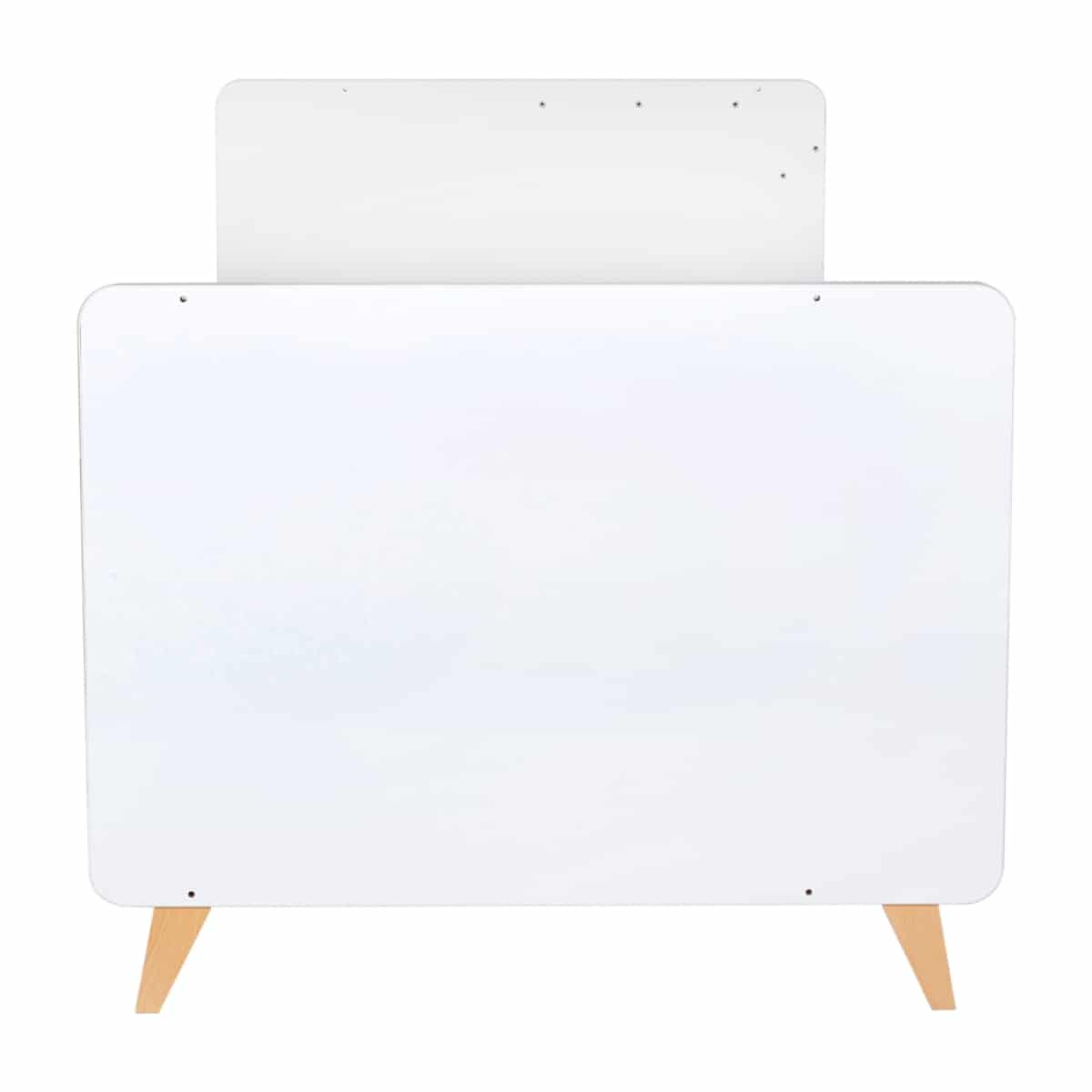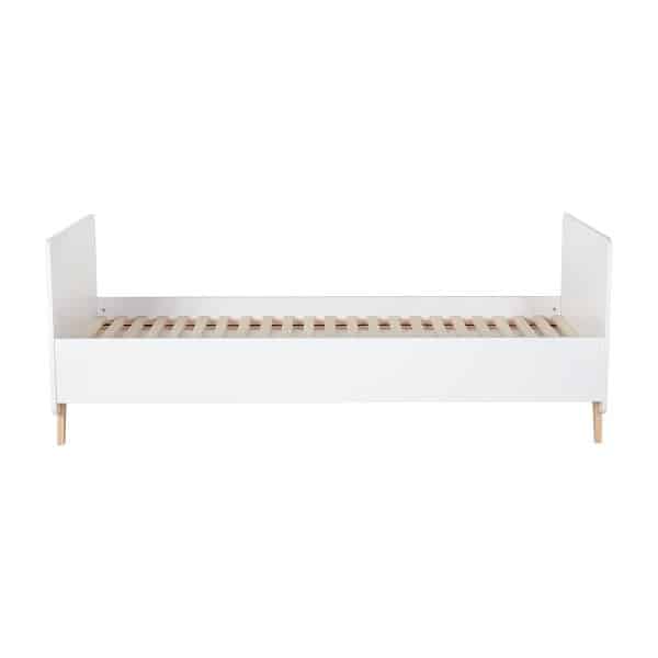 Het Loft Meegroeibed biedt veelzijdigheid en duurzaamheid in één elegant ontwerp. Dit bedje, aanvankelijk met afmetingen van 120 x 60 cm, transformeert moeiteloos naar een ruim junior bed van 200 x 90 cm. Met drie verstelbare bodemhoogtes (29 cm, 44 cm en 59 cm) past dit bedje zich aan aan de behoeften van je kleintje terwijl ze groeien. Wanneer de tijd rijp is, maakt het meegroeibed plaats voor het ruimere junior formaat, waardoor een naadloze overgang wordt geboden.Voor extra gemoedsrust tijdens deze overgangsfase, hebben we handige uitvalbeschermers (ref. 54FD-01-00X) ontwikkeld, zodat ouders zich geen zorgen hoeven te maken tijdens de nachtelijke avonturen van hun kleintje.Gesteund door vier stevige pootjes van massief beukenhout, straalt het bedje stabiliteit en duurzaamheid uit, terwijl de zijpanelen van gemelamineerde spaanderplaat en massief beukenhout met spijlers een tijdloze elegantie toevoegen aan de kinderkamer.Veiligheid staat voorop bij Quax. Daarom is dit bedje voorzien van een kindvriendelijke polyurethaan lak die voldoet aan de strenge normen van EN 71-3, waardoor nieuwsgierige ontdekkingsreizigers veilig kunnen rusten. Bovendien voldoet het bedje aan de hoogste veiligheidsnormen en is het gecertificeerd volgens de norm EN 716, zodat ouders met een gerust hart kunnen genieten van kostbare momenten met hun kleintje.