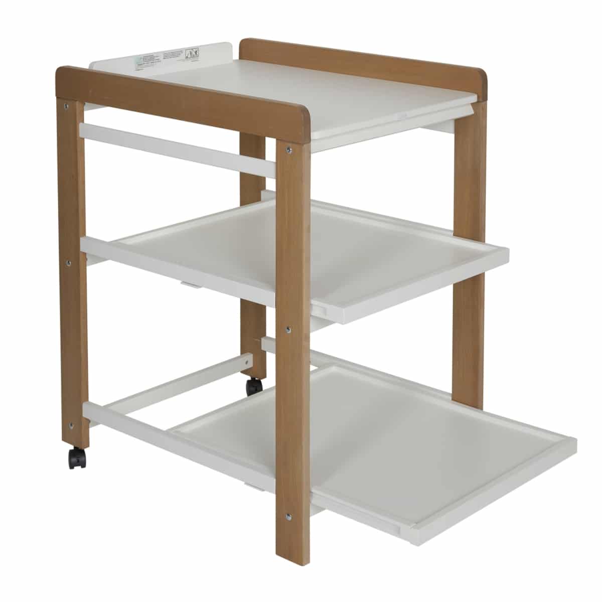 Creëer een comfortabele en handige verschoonruimte met onze “Luiertafel Comfort”. Deze hoogwaardige tafel is vervaardigd uit duurzaam MDF en beukenhout, dat gelakt en geolied is voor een prachtige afwerking.De “Luiertafel Comfort” is uitgerust met uitschuifbare planken voor voldoende opbergruimte en gemak tijdens het verschonen van je baby. De planken glijden soepel dankzij de geleiders.Met afmetingen van 60 cm x 74 cm x 95 cm (H) past deze tafel perfect in de meeste kamers. Bovendien is de “Luiertafel Comfort” voorzien van 2 wieltjes, zodat je hem gemakkelijk kunt verplaatsen.Onze “Luiertafel Comfort” voldoet aan de EN 12221-2008+A1:2013 norm, wat betekent dat hij voldoet aan strenge veiligheidsnormen.Upgrade je verschoningstijd met comfort en functionaliteit dankzij onze “Luiertafel Comfort”.