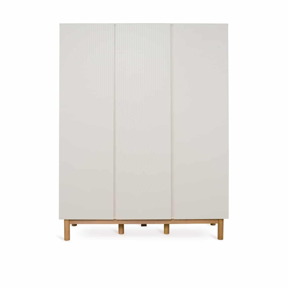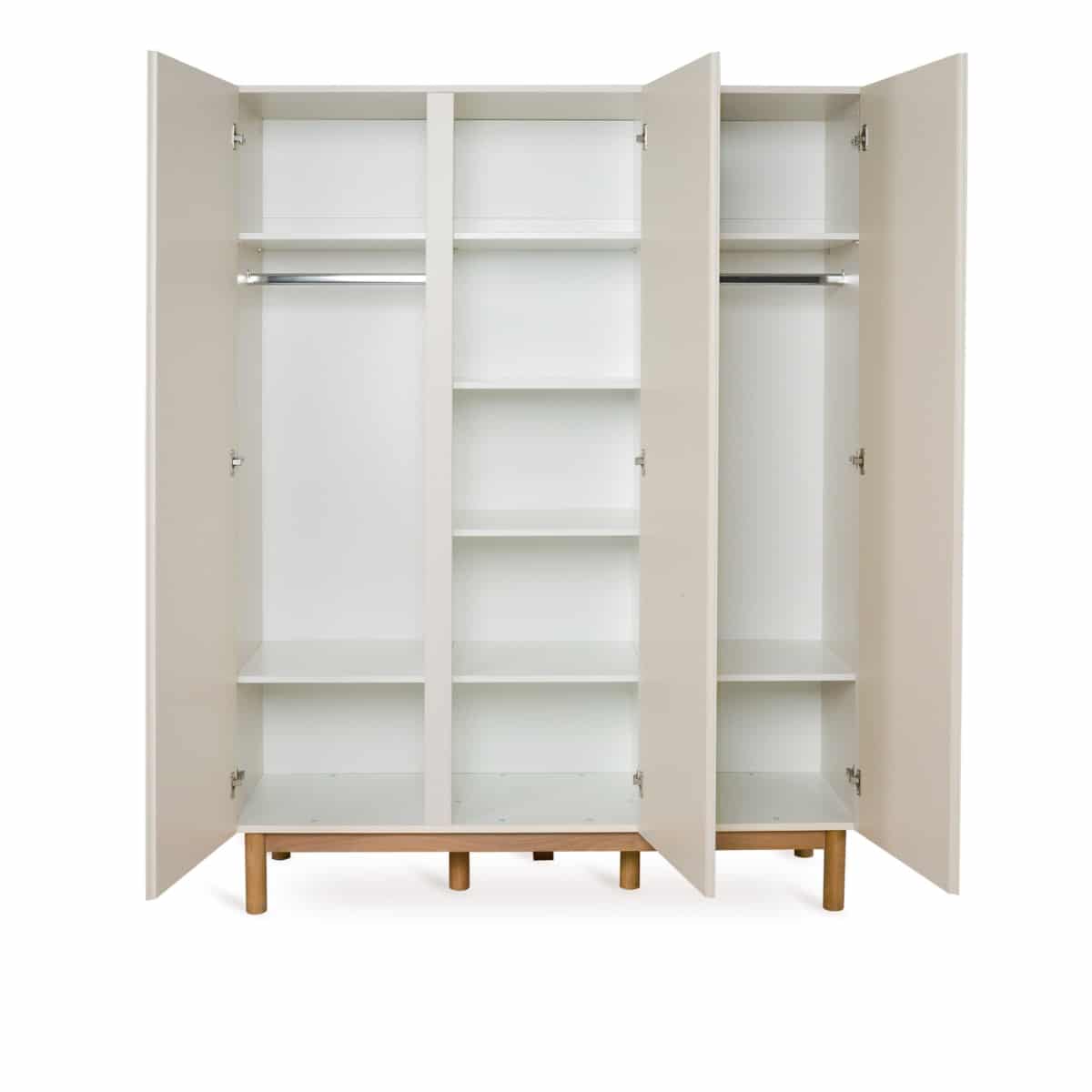 Met zijn geometrische lijnen en solide beukenhouten poten straalt de Mood Kast XL met 3 draaideuren elegantie en functionaliteit uit. Ideaal voor het organiseren van de garderobe van je kleintje, biedt deze kast maar liefst acht legplanken en drie kleerhangers. De afmetingen van deze kast zijn 165 x 52 x 182 cm, waardoor er voldoende ruimte is voor al hun kleding en accessoires.De deuren van deze kast openen met een handig pushsysteem, wat het gebruiksgemak vergroot. Het materiaal van deze kast is zorgvuldig geselecteerd voor duurzaamheid en kwaliteit. De poten zijn gemaakt van massief beukenhout, terwijl de bovenbouw van MDF is en is afgewerkt met een polyurethaan lak. De legplanken en laden zijn gemaakt van gemelamineerde spaanplaat, wat zorgt voor een stevige en betrouwbare constructie.Deze kast maakt deel uit van de Mood collectie, die bekend staat om zijn tijdloze design en geometrische lijnen. Voeg deze kast toe aan de kinderkamer voor een stijlvolle en georganiseerde ruimte.