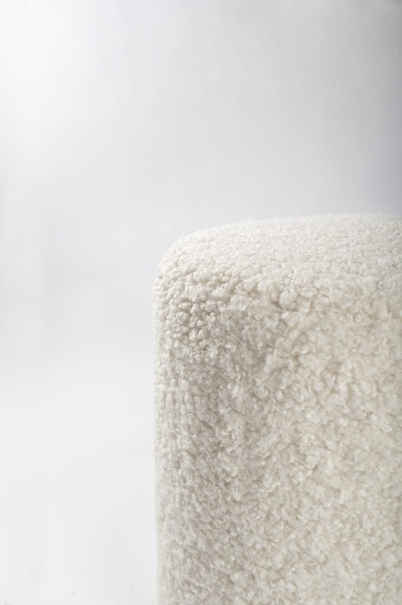 Deze comfortabele kruk is verkrijgbaar in de kleur off-white (Teddy/Bouclé).