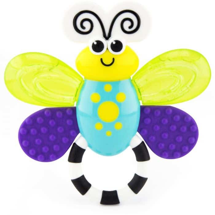 Zoveel texturen voor baby om te ontdekken! De gesteriliseerde met water gevulde vleugels zorgen voor een verkoelend gevoel en extra textuur voor baby om te ontdekken. Het lieve symmetrische gezichtje van de Flutterby kalmeert baby terwijl de tonale kleuren de ontwikkeling van het gezichtsvermogen stimuleren.