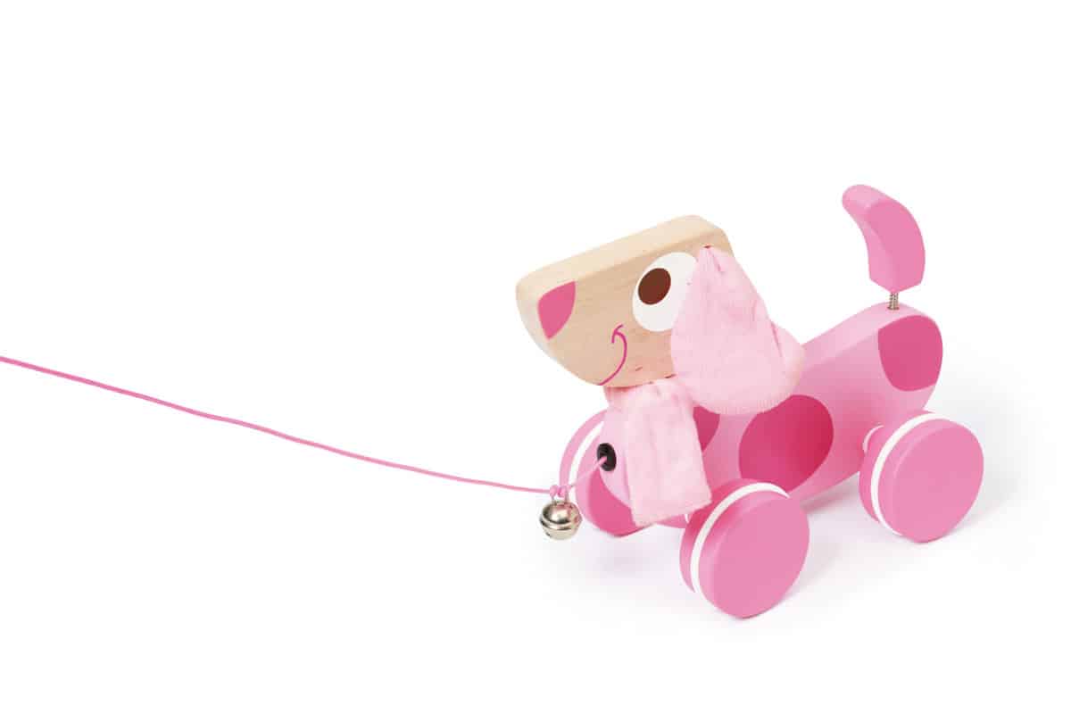 Scratch – Preschool: TREKFIGUURTJE groot HOND roze Lily 28.5×21.5x12cm, met belletje, in doos, 18m+