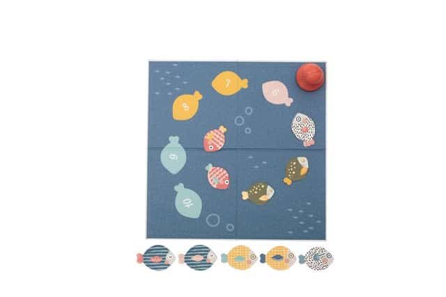 Mijn eerste magnetische visspelletje is geïnspireerd op het best verkopende nostalgische visspel met hengel. Het populaire spel is op deze manier toegankelijk voor heel jonge peuters. Ze zullen het geweldig vinden om de visjes te vangen met de magische magnetische visvanger! Het spelbord is dubbelzijdig en geschikt voor twee verschillende leeftijdsgroepen. Stimuleert de fijne motoriek, cognitieve vaardigheden en de hand-oog coördinatie. Meerdere manieren om te spelen: vissen – het verzamelen van vissen op het spelbord, kleuren – herkennen en benoemen, maten – groot en klein vergelijken, vergelijken – op kleur, maat of patroon, tellen en getallen herkennen en paren en sorteren. Inclusief babyveilige magnetische visvanger, 10 dubbelzijdige magnetische vissen en een dubbelzijdig spelbord. Vanaf 12 maanden.