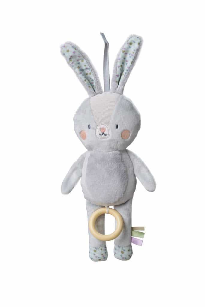 Dit rustgevende, zachte konijntje is ontworpen om baby’s en jonge kinderen comfort en entertainment te bieden. Het knuffelbare konijn heeft een ingebouwd muziekdoosje dat een rustgevend slaapliedje speelt. Het melodietje is eenvoudig te activeren door aan de bijtring te trekken. Het konijntje helpt baby’s te ontspannen, vooral als het bedtijd is. Het konijntje is superzacht en dus ideaal om mee te knuffelen.