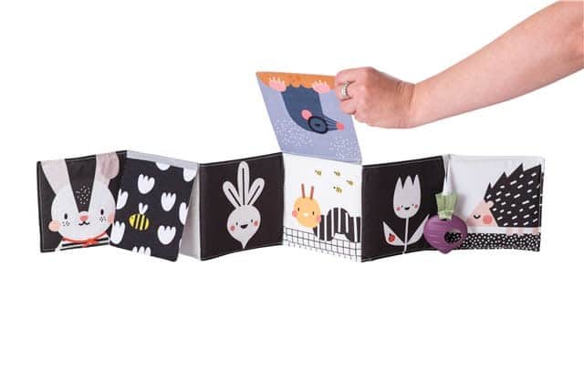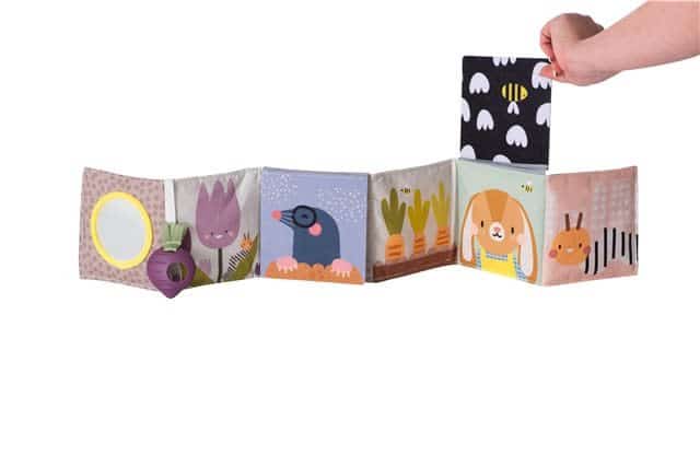 Een dubbelzijdig, zacht knisperboekje uit de Urban Garden collectie voor twee ontwikkelingsstadia. Aan de ene kant heeft het boek contrastrijke illustraties en eenvoudige vormen om de visuele stimulatie en de emotionele intelligentie van de baby te helpen ontwikkelen vanaf de eerste dag. De andere kant bestaat uit kleurrijke, complexere illustraties en patronen, een babyveilige spiegel en een bietenbijtring om baby’s fijne motoriek te helpen ontwikkelen. Onder de kiekeboeflapjes zitten extra illustraties om de aandacht van je baby te trekken. Kan worden gebruikt om op de buik te spelen, maar ook in het bed/park en in de kinderwagen.