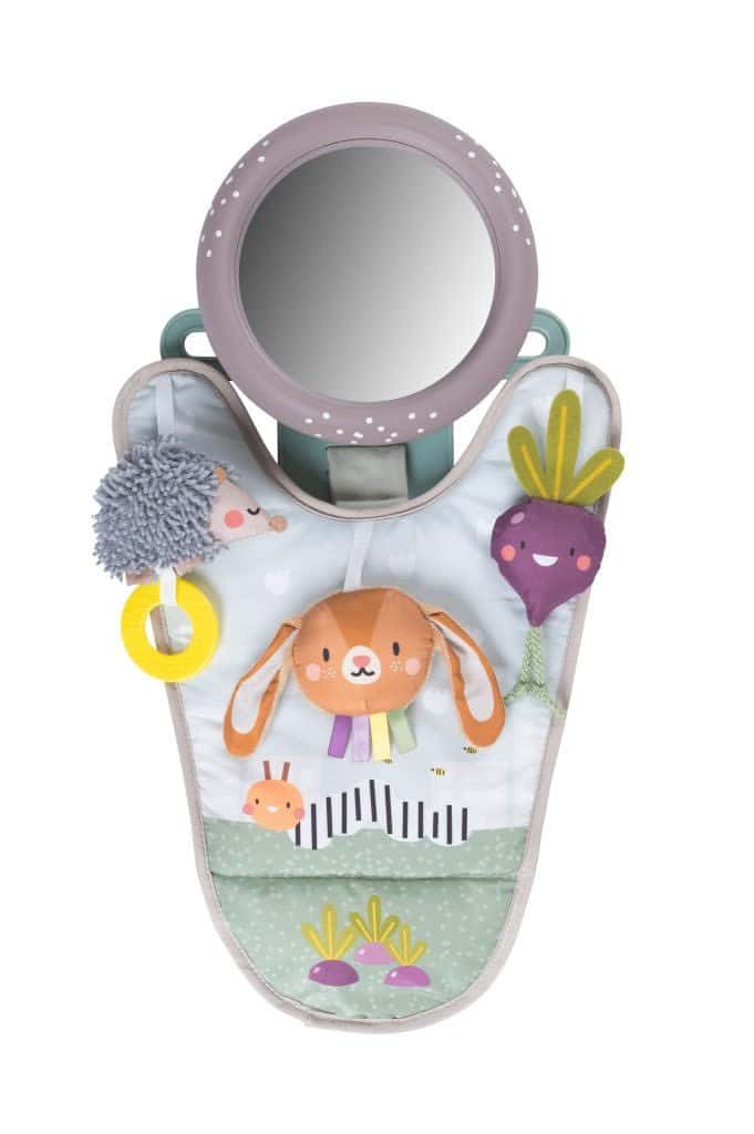 Innovatief activiteitencentrum om baby’s die in een naar achteren gericht stoeltje meerijden in de auto te entertainen. Dankzij de hoogwaardige en babyveilige achteruitkijkspiegel kan je als ouder je baby gemakkelijk zien. Het Car Activity Center bevat kleurrijke, zachte hangspeeltjes met rammelaars en geluiden die de zintuigen en de ontwikkeling van baby’s motoriek stimuleren: een knisperende biet, een rammelende Jenny het konijn en rinkelende belletjes van Spike de egel met bijtring. Gemakkelijk te bevestigen aan de hoofdsteun en aan te passen aan baby’s bereik. Spelen met de hangspeeltjes stimuleert de ontwikkeling van baby’s zintuigen, fijne en grove motoriek en oog-handcoördinatie.