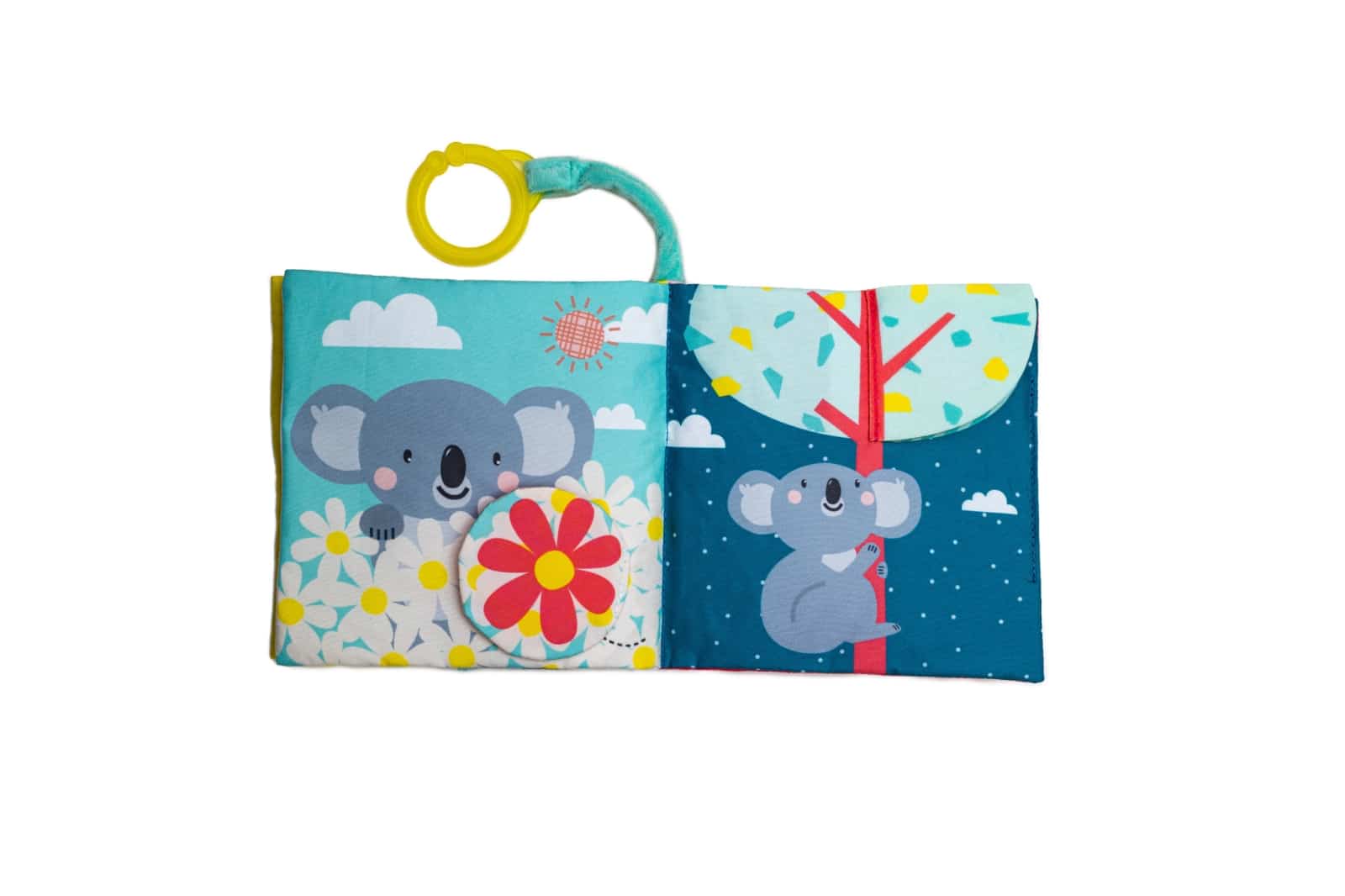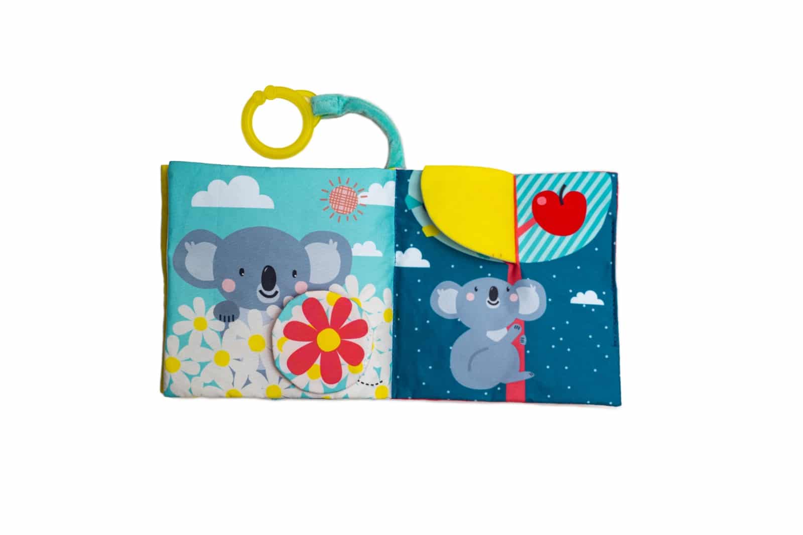 Een uniek en aantrekkelijk zacht boekje over de kleurrijke Kimmy de Koala die op zoek is naar haar baby Joey (Joey zat al die tijd in haarbuidel, ze moet wel moe zijn!). Kijk onder de flapjes van dit ‘kiekeboe’-boekje en ga samen met Kimmy mee op ontdekking. De verschillende geluiden, stofjes en texturen bevorderen de fijne motoriek van je baby. Vanaf 6 maanden zal je baby beginnen begrijpen dat iets er nog steeds is, ook al zie je het even niet. Deze ontdekking maakt het nog leuker om op zoek te gaan naar baby Joey!