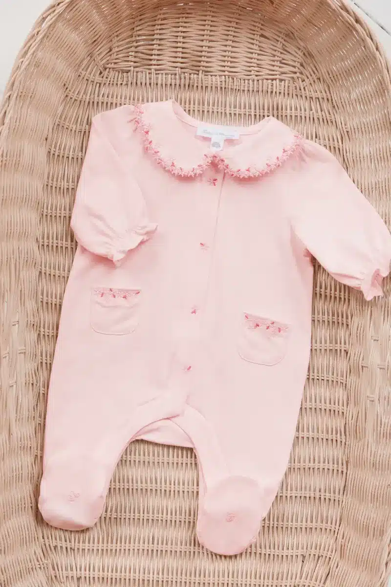 Deze lichtroze pyjama is perfect voor de zachte nachten van je baby. Met zijn grote, geschulpte kraag en delicate bloemenborduursels hult hij je baby in tederheid. Praktische details zoals zakjes en knoopsluitingen zorgen voor extra functionaliteit. Gemaakt van 100% katoen, garandeert hij comfort en zachtheid. Combineer hem met een slaapzak uit de “baby nuit”-collectie voor nog knuffeligere nachten!