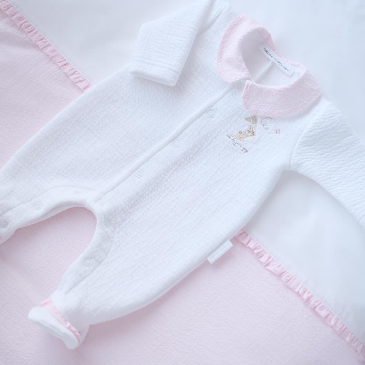 Théophile & Patachou – Kruippakje jersey gewafeld kraag – Garden party – Roze