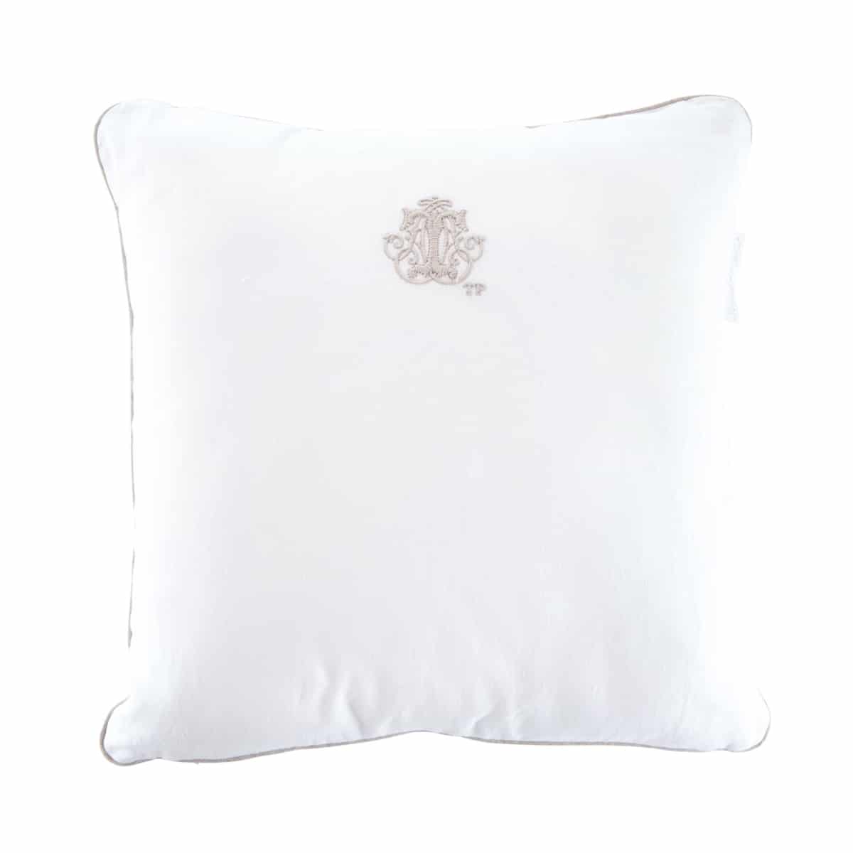 Theophile & Patachou – Kussen geborduurd – Linnen Wit