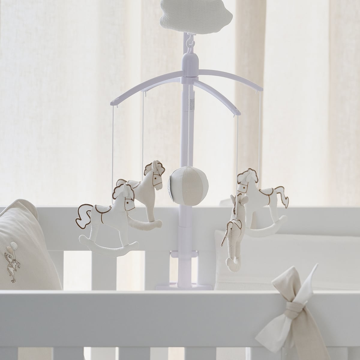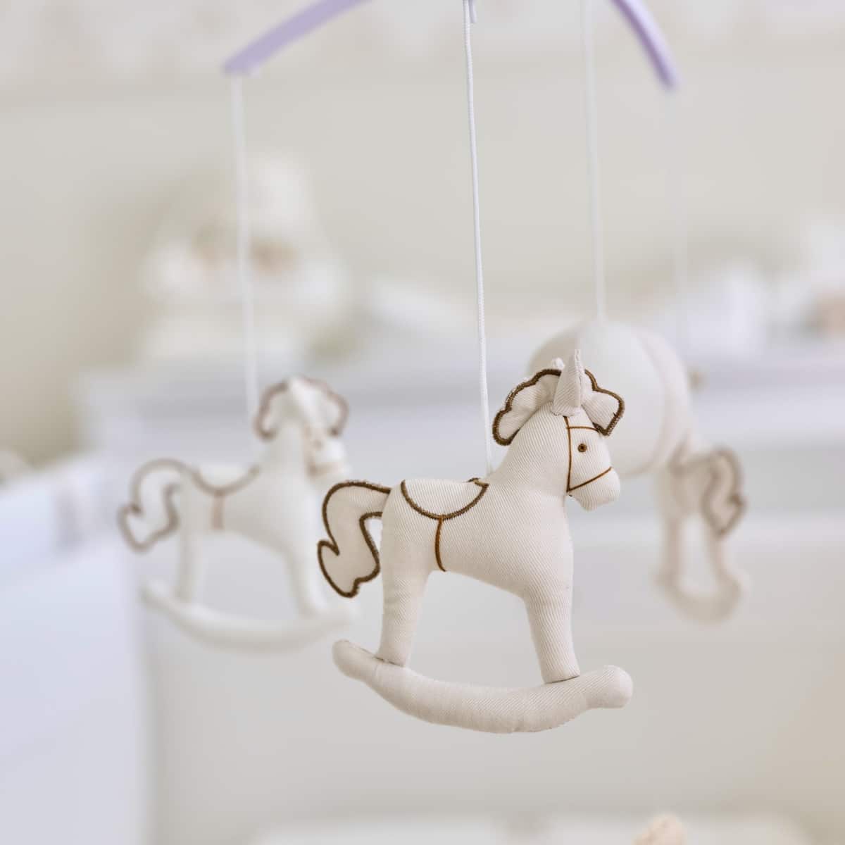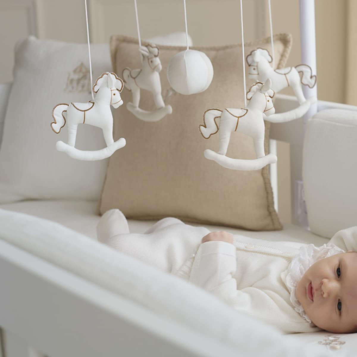 Om de baby te helpen in slaap te vallen, zal de muzikale mobiel “Paard “ op zijn bed gevestigd worden en laat een rustgevend muziekje horen « Mozart’s Lullaby » . Aanbevolen van 0 tot 5 maanden.