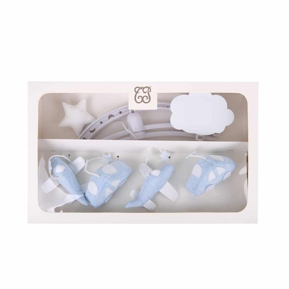 Theophile & Patachou – Muziekmobiel ”vliegtuigen en autos” Lichtblauw