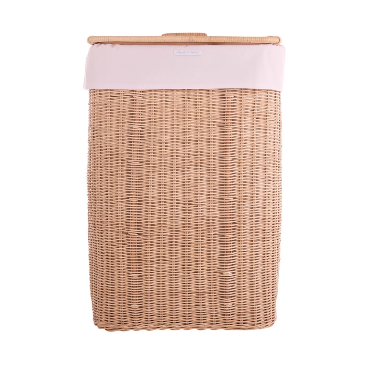 Theophile & Patachou – Rechthoekige rieten linnenmand + Bekleding katoen Roze
