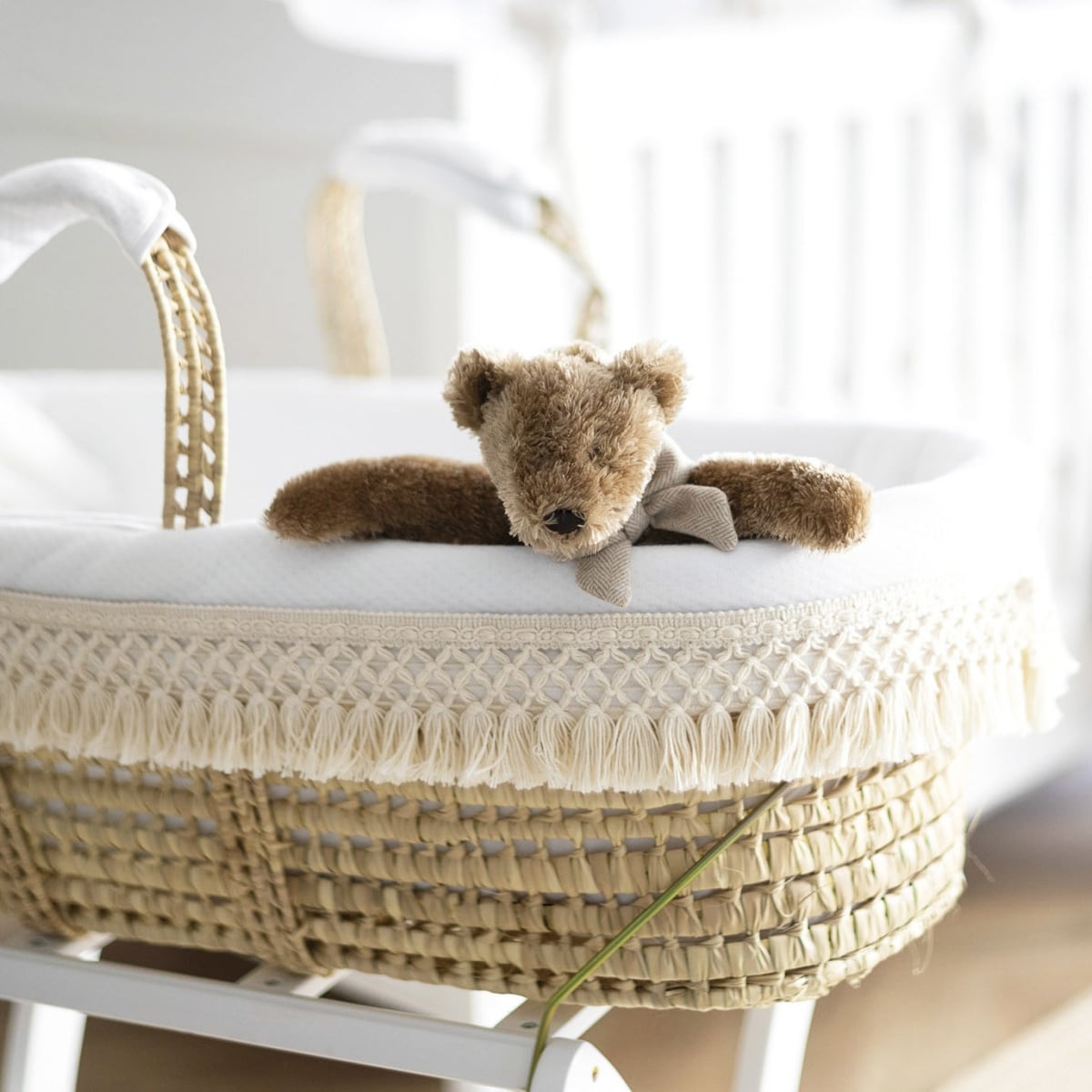 Theophile & Patachou – Rieten reiswieg + Aankleding natureel franjes