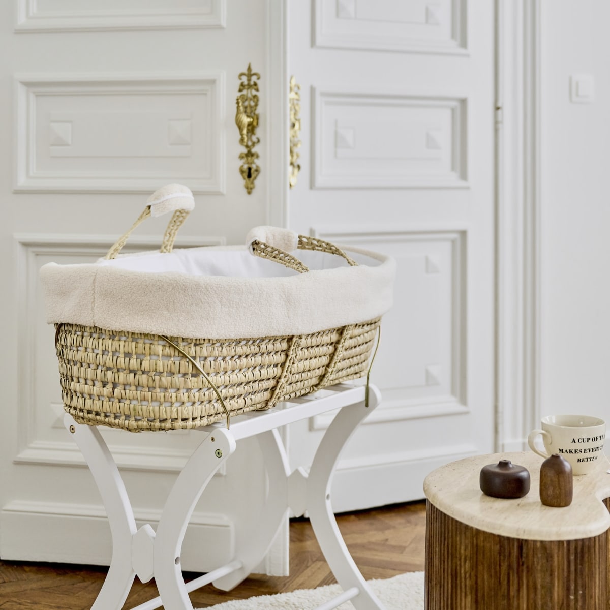 Theophile & Patachou – Rieten reiswieg + Aankleding schapen Naturel Carrousel