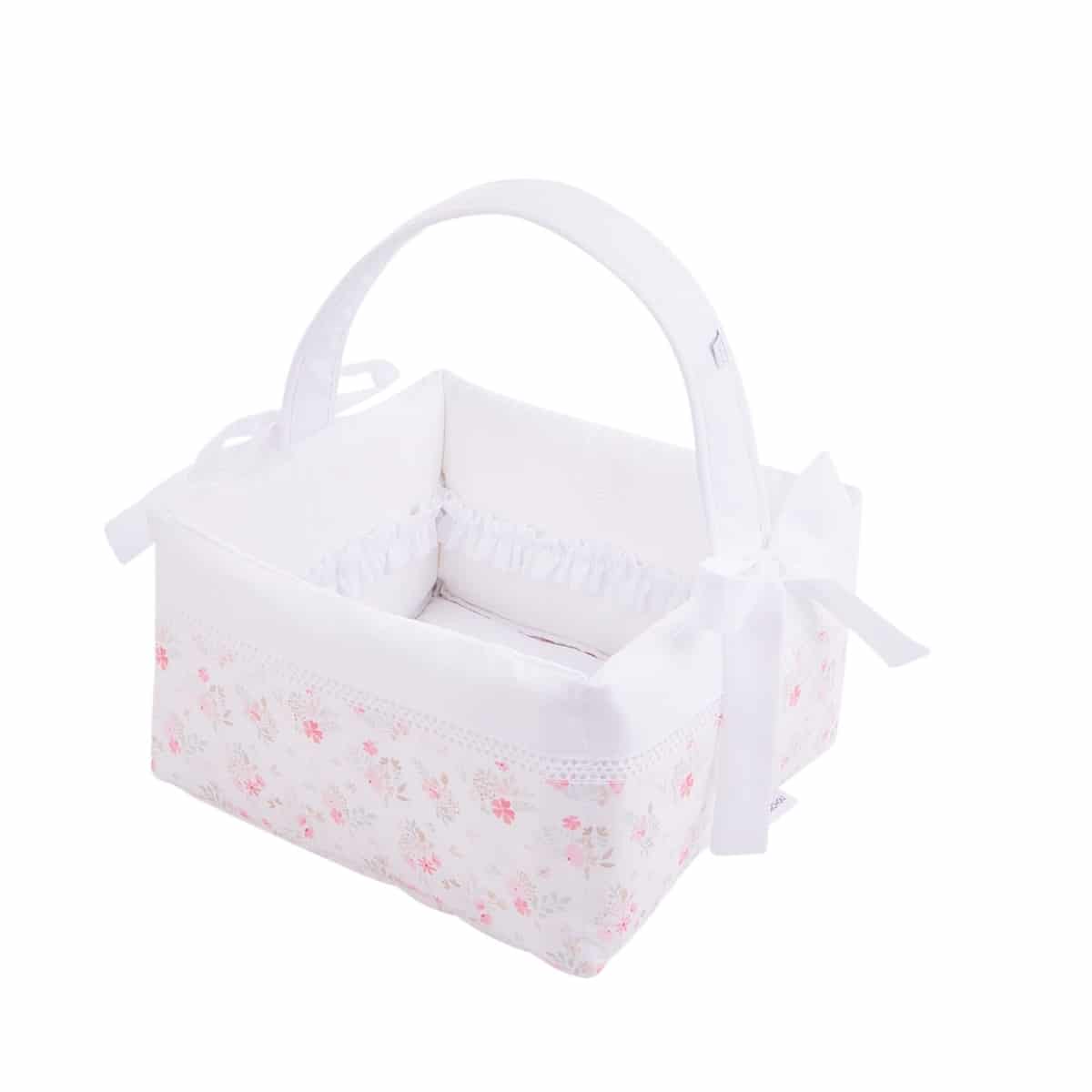 Praktisch en elegant, het baby verzogingsmand van geprint stof Pink Flower maakt het mogelijk om alle producten van de baby op te bergen.