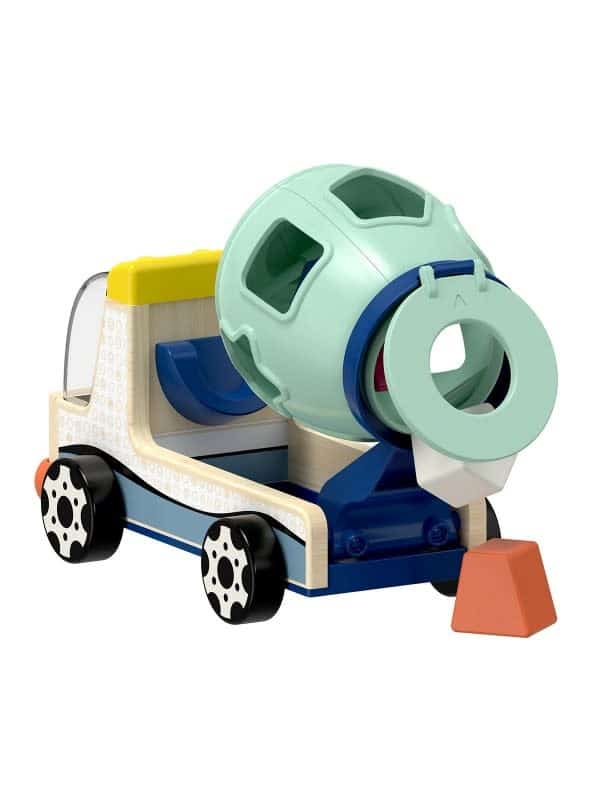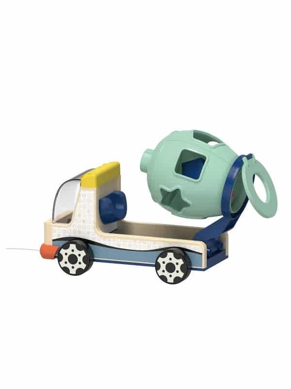 Met zijn trendy unisex-kleuren stimuleert het kleurrijke voertuig meisjes en jongens om te spelen, grijpen en ontdekken. Het bouwplaatsvoertuig is gemaakt van natuurlijk hout en hoogwaardig kunststof. Omdat kinderen de wereld met al hun zintuigen ontdekken, wordt het hout behandeld met verf op waterbasis die bijzonder veilig is. Tijdloze patronen in contrasterende zwart-wittinten op het voertuig stimuleren de visuele ontwikkeling en fascineren zelfs de jongste kinderen. De kleurrijke houten vormen zijn ook het ideale formaat voor kleine kinderhandjes.