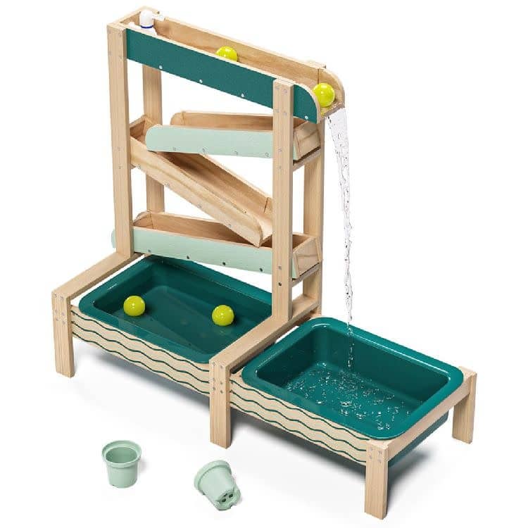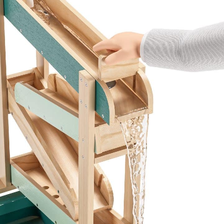 het principe van een knikkerbaan die tot leven wordt gebracht door water