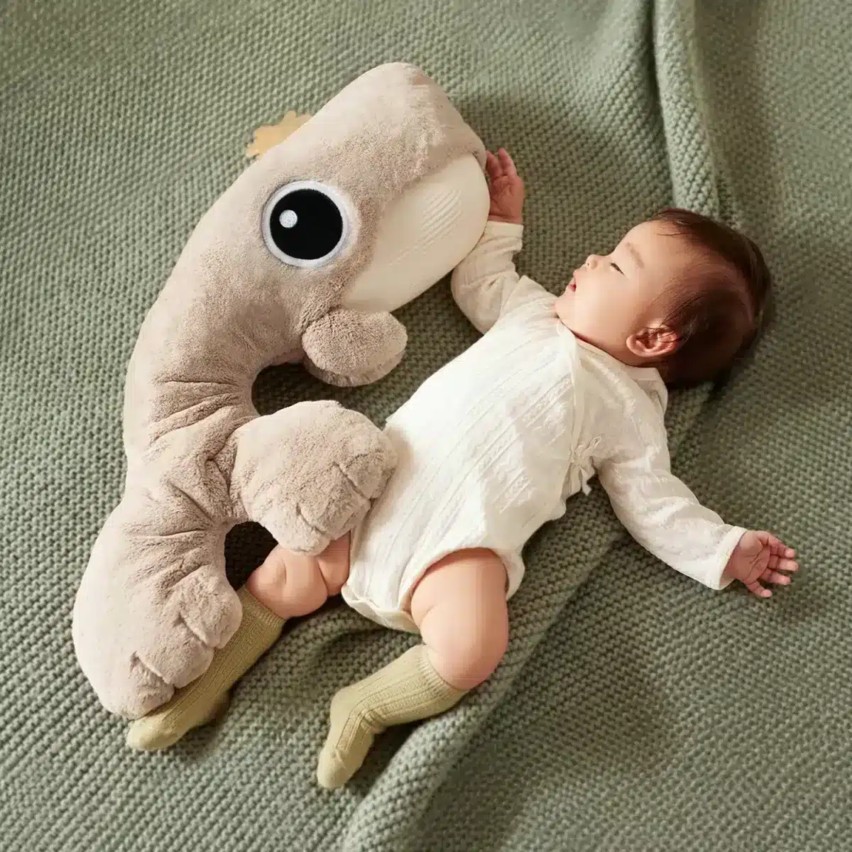 De SleepWell Whale – altijd bij je, altijd zorgzaam. De walvis is zowel een intelligent knuffeldier als een behulpzame steun voor ouders. Het geeft ouders de zekerheid dat hun baby in goede handen is en dat ze kunnen vertrouwen op een betrouwbare metgezel die hun baby onmiddellijk zal kalmeren als hij wakker wordt en huilt. De walvis is niet alleen een product, maar een trouwe vriend voor baby’s. Net zoals echte walvissen liefdevol voor hun kleintjes zorgen, zal onze walvis altijd bij je baby zijn om ze te kalmeren en te troosten. Met een unieke combinatie van verschillende functies geeft de walvis baby’s een gevoel van veiligheid. Dit omvat een zachte aai- en aanraakfunctie van de staartvin, die het vertrouwde vasthouden in de arm nabootst. De geïntegreerde slimme huilsensor reageert op de geluiden van de baby en activeert de door de ouders vooraf ingestelde kalmerende functie op tijd. De mogelijkheid om de stemmen van de ouders op te nemen creëert ook een sfeer van vertrouwen en veiligheid – zelfs als de ouders niet fysiek aanwezig zijn. Het veiligheidscontragewicht van 1,4 kg zorgt ervoor dat de baby zich veilig voelt en veilig blijft in zijn wieg. De innovatieve walvis biedt uitkomst bij veelvoorkomende problemen waar ouders mee te maken krijgen: weinig slaap en zorgen over het welzijn van hun baby.