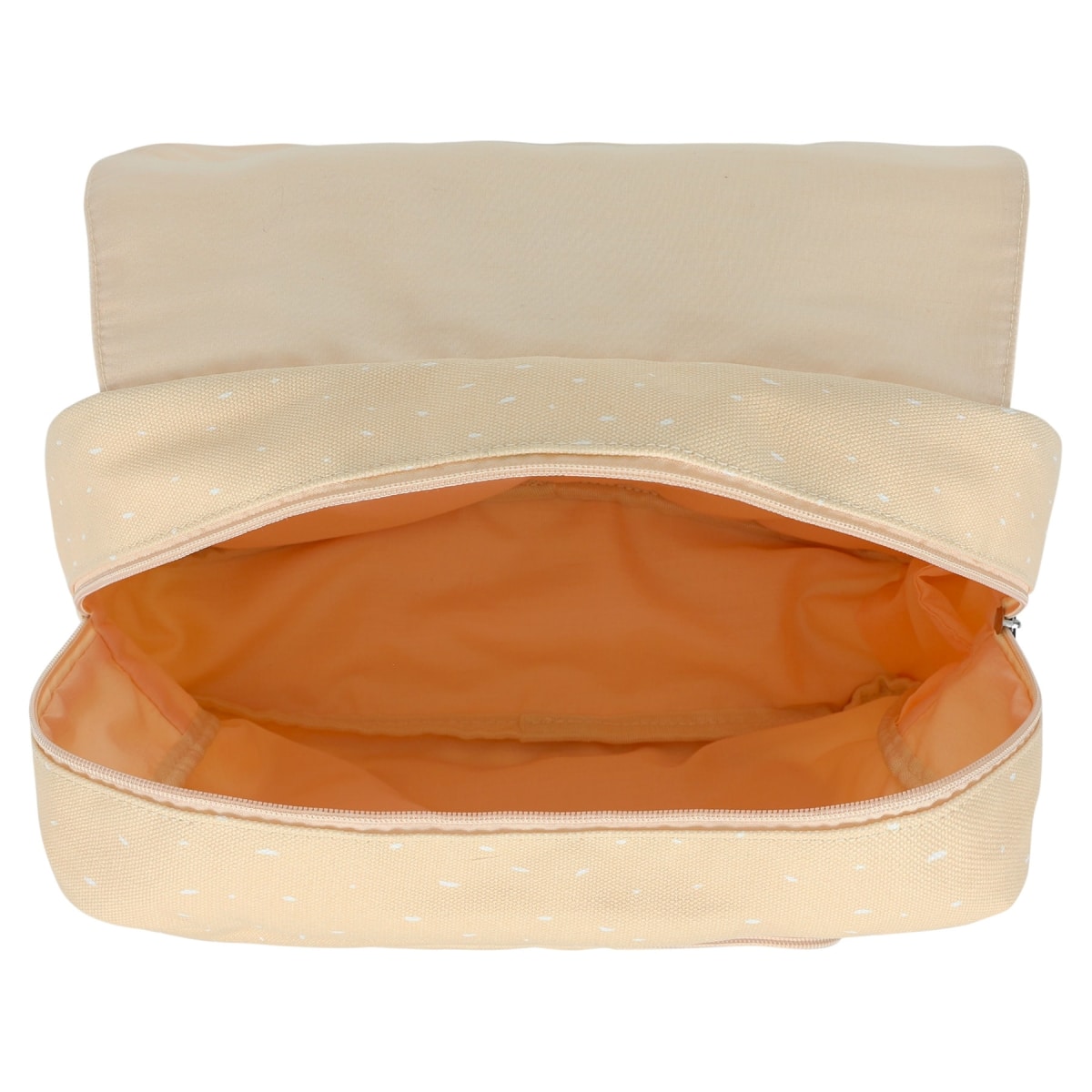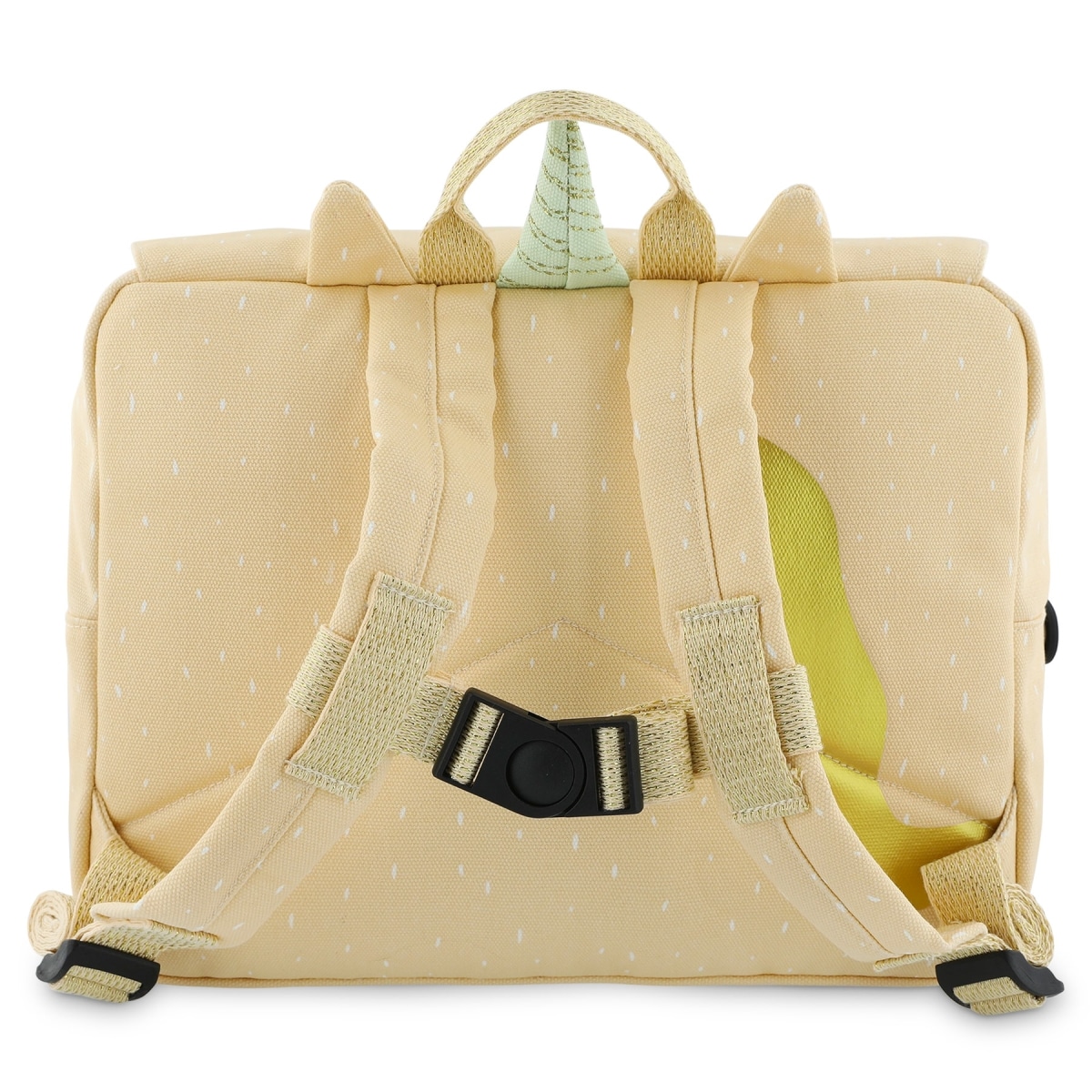 Met dit leuke boekentasje is je kindje helemaal klaar voor de eerste schooldag! De boekentas heeft verstelbare en gewatteerde schouderriemen en aan de bovenkant een handvat om gemakkelijk te kunnen ophangen. De gesp op de borst zorgt ervoor dat de schouderriemen niet van de schouders glijden. Er is ook een klein zakje aan de voorkant voorzien en de ritsen van het grote compartiment en het voorste zakje zijn voorzien van een groter trekkertje zodat de kindjes ze zelf eenvoudig kunnen openen en sluiten. Om te vermijden dat je kindje z’n boekentasje kwijtspeelt, hebben we langs de binnenkant een naam label voorzien.