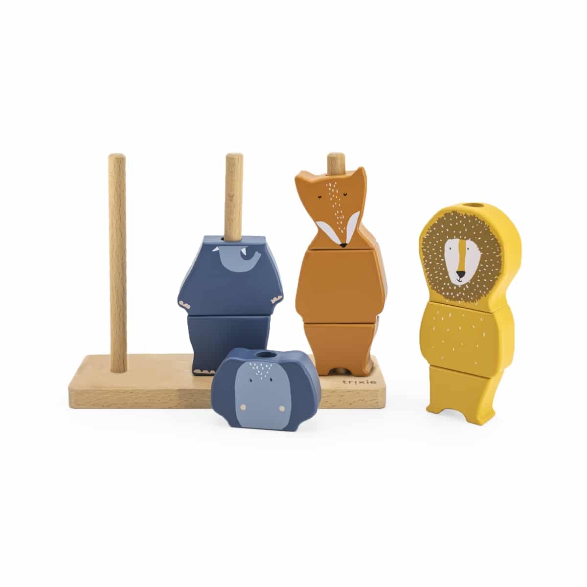 Drie dierenvrienden om eindeloos plezier mee te maken! Maak de gekste combinaties of probeer de drie dieren weer in hun oorspronkelijke vorm te puzzelen. Elk kleintje zal genieten van de combinatie van verbeeldingskracht en het testen van hun fijne motoriek bij het plaatsen van de blokken op de stapelaar.