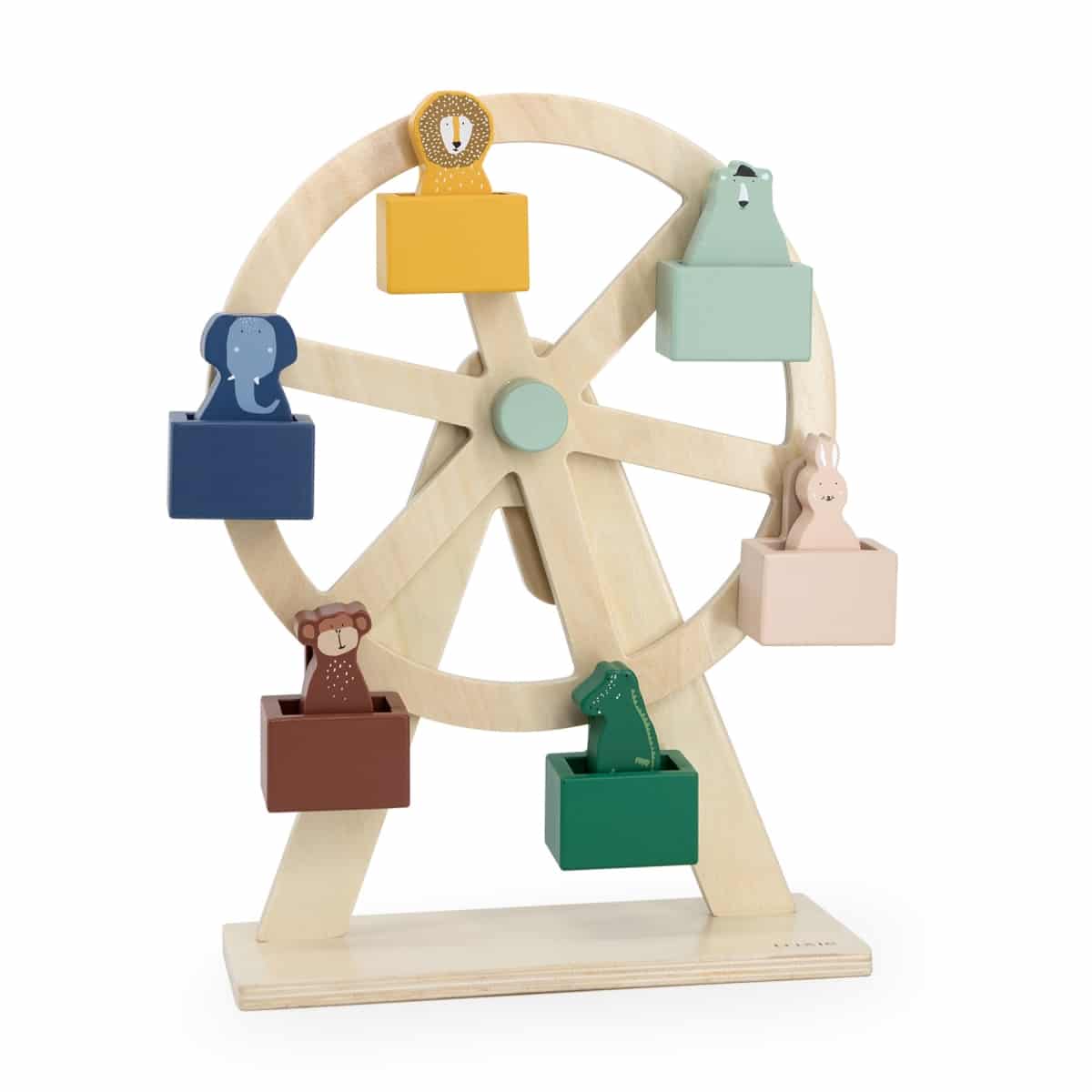 Het reuzenrad en de dieren zijn gemaakt van 100% FSC ® gecertificeerd hout. Alle verven zijn op waterbasis en veilig voor baby’s.