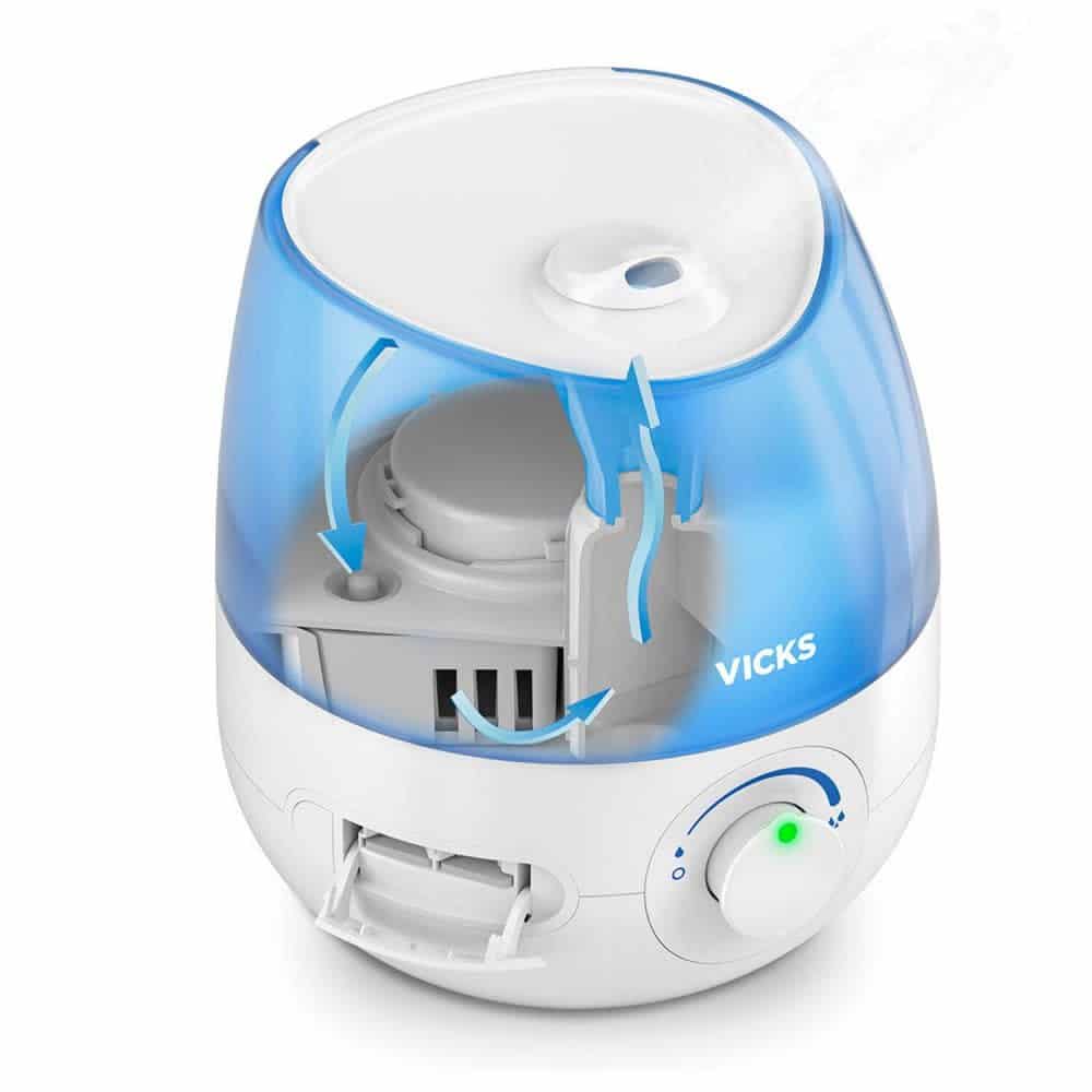 Deze miniluchtbevochtiger, die kan worden gebruikt met VapoPads, helpt de vochtigheidsbalans binnenshuis tussen 40 en 60% te houden om op natuurlijke wijze een droge keel en neus te verlichten door ze vochtig te houden en om de overlevingskansen van griepvirussen op oppervlakten en in de lucht te verminderen.