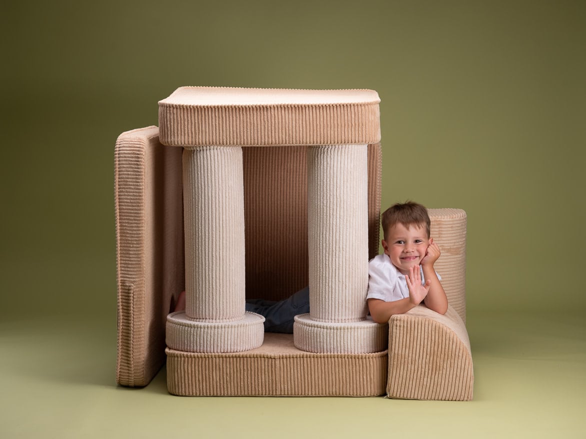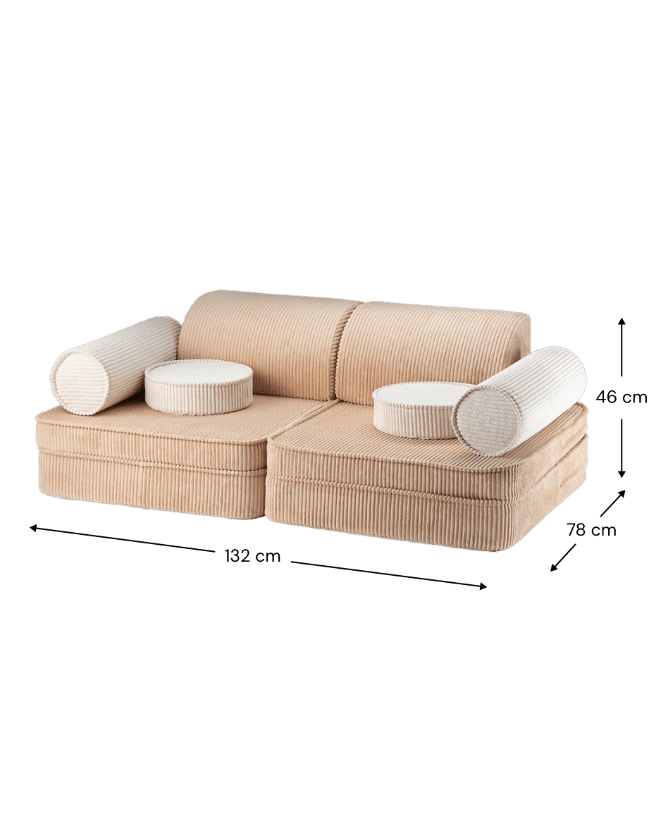 The Wigiwama Settee comes in 9 parts – two seat cushions, one big seat cushion, two triangular cushions as backrests, two roll cushions as armrests, and two round cushions – providing a perfect combo with limitless potential for imaginative play and relaxation.