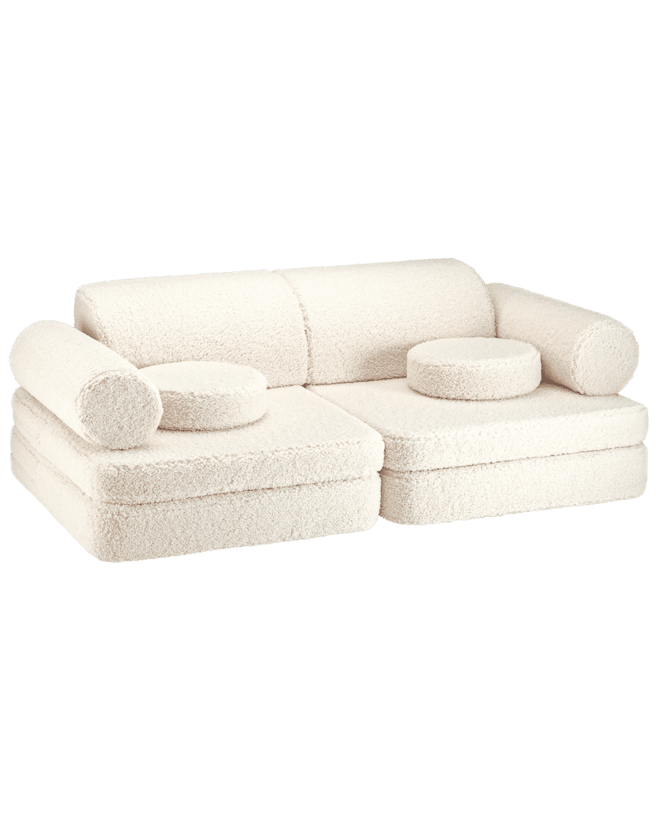 Introducing Teddy Settee: The next level of coziness! Get ready for a dynamic companion that will become your little one’s ultimate best buddy, accompanying them through each and every day. Highly versatile, specially designed to fit into all types of family homes Settee will create a safe environment for play, rest, nap, or whatever the little Settee owner is up to. The Wigiwama Settee comes in 9 parts – two seat cushions, one big seat cushion, two triangular cushions as backrests, two roll cushions as armrests, and two round cushions – providing a perfect combo with limitless potential for imaginative play and relaxation. The Settee is not just a piece of furniture – it’s an invitation to a world of joy and discovery! Outer shell: OEKO-TEX® certified teddy fabric Filling: ISO-certified polyurethane foam Size: Length 132 cm / Width 78 cm / Height 46 cm Features a zip opening so the cover could be removed and washed according to the washing instructions Made locally in Latvia with care for our planet