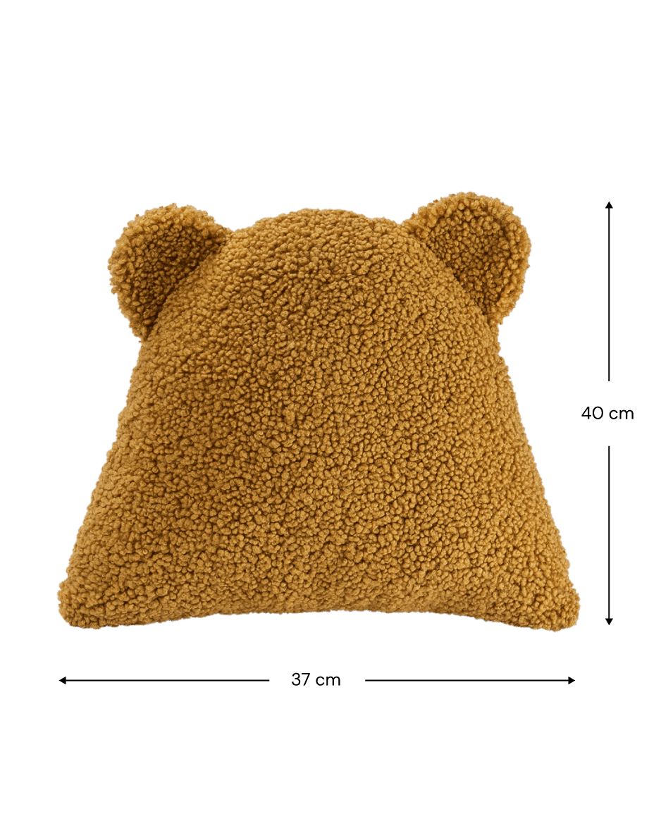 This adorable cushion is designed with charming bear ears, adding a delightful touch. Crafted from soft teddy fabric, it becomes the perfect cuddly companion for your little one. Whether they’re playing or taking a nap, this cushion is sure to bring a smile to their face.